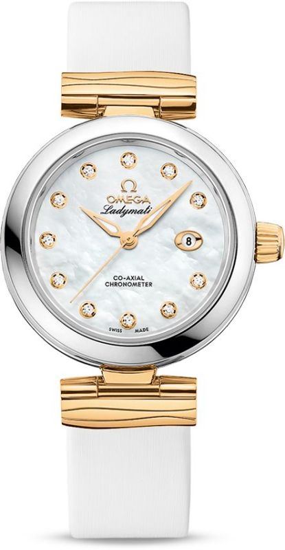 Model: 425.22.34.20.55.003 - CASE = [Material:Stainless Steel and 18kt Gold], [Case Diameter:34], [Water Resistant:100 Meters - 330 Feet], [Crystal:Scratch Resistant Sapphire], DIAL = [Color:Mother of Pearl with Gold Luminescent Hands and Diamond Hour Markers], MOVEMENT = [Type:Manual Wind], [Crown:Screw Down], BAND = [Clasp:Deployment], [Type:White Leather], (Usually ships in 2 to 4 weeks.)
