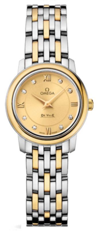 Model: 424.20.24.60.58.001 - CASE = [Material:Yellow Gold and Stainless Steel], [Case Diameter:24.4], [Bezel:Fixed], [Case Back:Solid], [Water Resistant:30 Meters/100 Feet], [Crystal:Scratch Resistant Sapphire], DIAL = [Color:Champagne with Diamonds], MOVEMENT = [Type:Battery Powered Quartz], BAND = [Clasp:Push Button Foldover], [Type:Yellow Gold and Stainless Steel], (Usually ships in 2 to 4 weeks.)