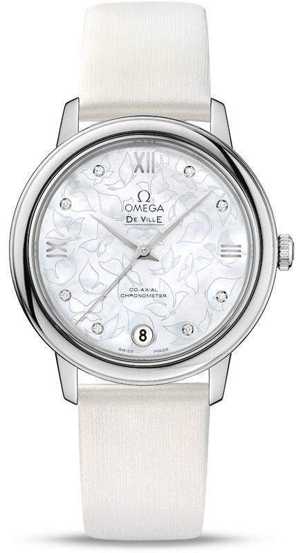 Model: 424.12.33.20.55.001 - CASE = [Material:Stainless Steel], [Case Diameter:33], [Case Thickness:9.5mm], [Bezel:Fixed], [Case Back:Solid], [Water Resistant:30 Meters - 100 Feet], [Crystal:Scratch Resistant Sapphire],; DIAL = [Color:Mother of Pearl with Silver Hands Roman Numerals and Diamond Hour Markers],; MOVEMENT = [Type:Automatic Chronometer], [Crown:Push In],; BAND = [Type:White Satin], (Usually ships in 2 to 4 weeks.)