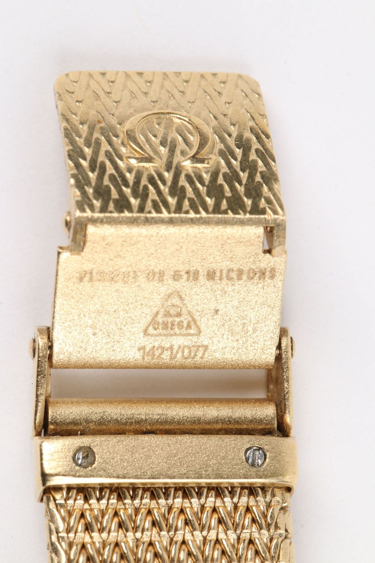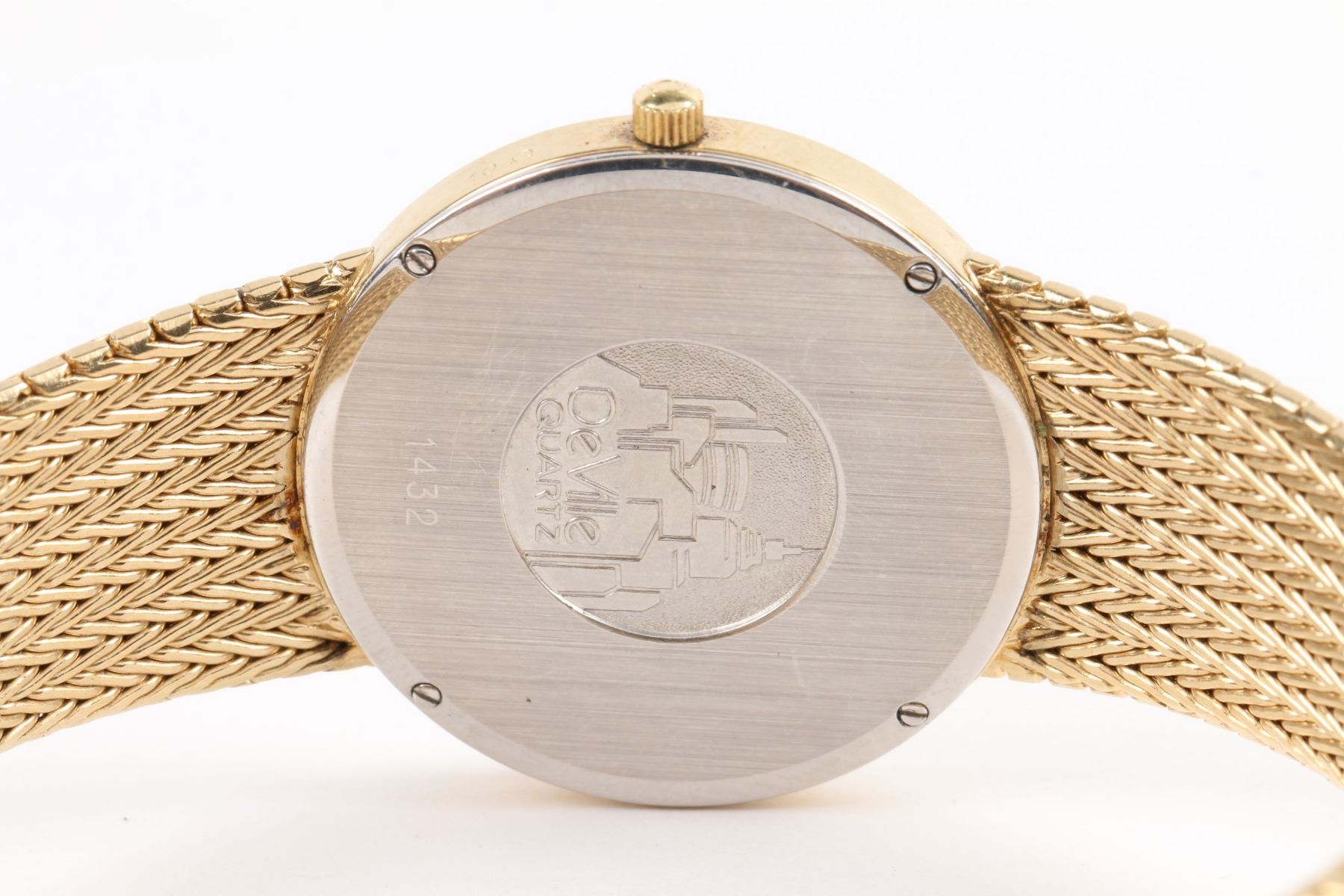 CIRCA: 1980s. CASE MATERIAL: Gold Plated. DIAL DIAMETER: 26mm. BRACELET MATERIAL: Gold Plated. MOVEMENT: Quartz. FEATURES: Date. WEIGHT: 52.8g. Est. $200-300 DISCLOSURE: Watches were running at time of photography unless otherwise stated. Service history is unknown unless paperwork is provided. We cannot guarantee accuracy of any of the watches offered. "