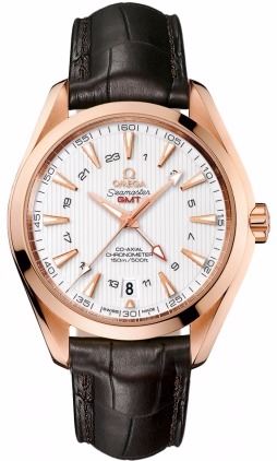 Model: 231.53.43.22.02.001 - CASE = [Material:Brushed and Polished 18k Rose Gold], [Case Diameter:43], [Bezel:Fixed, Polished], [Case Back:See-thru Sapphire crystal], [Water Resistant:150 Meters/500 Feet], [Crystal:Anti-Reflective Scratch Resistant Sapphire],; DIAL = [Color:Silver Linear Design with Rose Gold Index Hour Markers, GMT Second Time-Zone Feature, Date at 6],; MOVEMENT = [Type:Co Axial Chronometer with SI 14 Balance Wheel - Automatic Self Winding Omega 8605 with Approx. 60hr Power Reserve],; BAND = [Clasp:Double Push Button Deployment], [Type:Brown Crocodile Leather], (Usually ships in 4 to 8 weeks.)