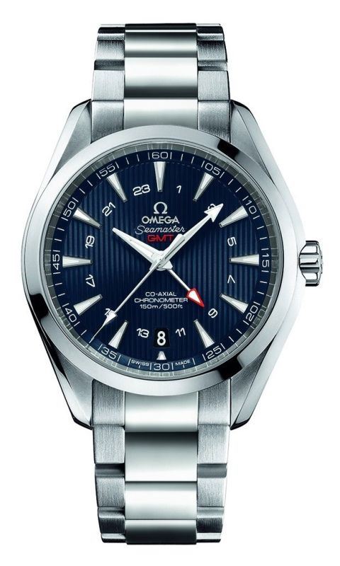 Model: 231.10.43.22.03.001 - CASE = [Material:Brushed and Polished Steel], [Case Diameter:43], [Bezel:Fixed, Polished], [Case Back:See-thru Sapphire crystal], [Water Resistant:150 Meters/500 Feet], [Crystal:Anti-Reflective Scratch Resistant Sapphire], DIAL = [Color:Blue Linear Design with Index Hour Markers, GMT Second Time-Zone Feature, Date at 6], MOVEMENT = [Type:Co Axial Chronometer with SI 14 Balance Wheel - Automatic Self Winding Omega 8605 with Approx. 60hr Power Reserve], BAND = [Clasp:Double Push Button Deployment], [Type:Steel Brushed and Polished], (Usually ships in 1 to 2 weeks.)