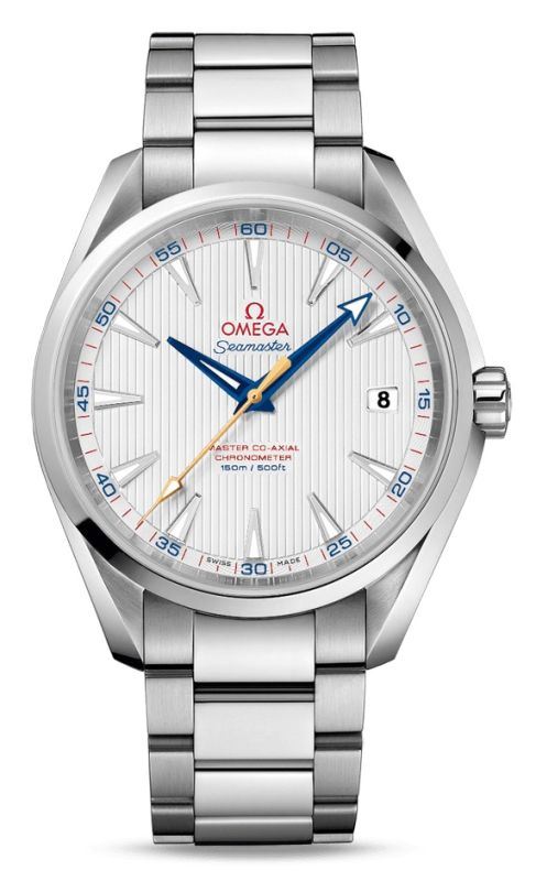 Model: 231.10.42.21.02.004 - CASE = [Material:Brushed and Polished Steel], [Case Diameter:41.5], [Bezel:Fixed, Polished], [Case Back:See-thru Sapphire Crystal], [Water Resistant:150 Meters/500 Feet], [Crystal:Anti-Reflective Scratch Resistant Sapphire], DIAL = [Color:Silver Linear Design with Index Hour Markers, Blue Minute and Hour Hands and 18K Yellow Gold Seconds Hand, Date at 3], MOVEMENT = [Type:Master Co-Axial Chronometer with Free Sprung Silicon Balance Wheel - Automatic Self Winding Omega 8500 with Approx. 60hr Power Reserve. Resistant to magnetic fields greater than 15,000 gauss.], [Crown:Screw Down], BAND = [Clasp:Double Push Button Deployment], [Type:Brushed and Polished Stainless Steel], (In Stock - Ready to ship.)