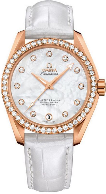 Model: 231.58.39.21.55.001 - CASE = [Material:18kt Rose Gold], [Case Diameter:38.5], [Bezel:Fixed with Diamonds], [Case Back:Skeleton], [Water Resistant:150 Meters - 500 Feet], [Crystal:Scratch Resistant Sapphire], DIAL = [Color:Natural Mother of Pearl with Diamonds], MOVEMENT = [Type:Automatic Chronometer], [Crown:Screw Down], BAND = [Clasp:Folding], [Type:White Alligator - Crocodile Leather], (Usually ships in 2 to 4 weeks.)