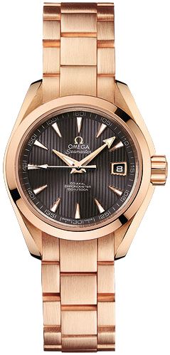 Model: 231.50.30.20.06.001 - CASE = [Material:Brushed and Polished 18k Rose Gold], [Case Diameter:30], [Bezel:Fixed 18k Rose Gold], [Case Back:See-thru Sapphire crystal], [Water Resistant:150 Meters - 500 Feet], [Crystal:Scratch Resistant Sapphire], DIAL = [Color:Teck-Grey Guilloche with Date at 3], MOVEMENT = [Type:Automatic Self Winding Co-Axial Chronometer with Approx. 60hr Power Reserve], [Crown:Screw Down], BAND = [Clasp:Push Button Foldover Clasp], [Type:18k Rose Gold], (Usually ships in 1 to 2 weeks.)
