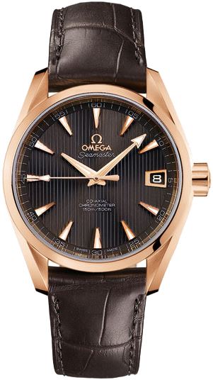 Model: 231.53.39.21.06.001 - CASE = [Material:Brushed and Polished 18k Rose Gold], [Case Diameter:38.5], [Bezel:Fixed 18k Rose Gold], [Case Back:See-thru Sapphire crystal], [Water Resistant:150 Meters - 500 Feet], [Crystal:Scratch Resistant Sapphire], DIAL = [Color:Teck-Grey Guilloche with Date at 3], MOVEMENT = [Type:Automatic Self Winding Co-Axial Chronometer with Approx. 60hr Power Reserve], [Crown:Screw Down], BAND = [Clasp:Deployment Buckle], [Type:Brown Crocodile Leather], (Usually ships in 2 to 4 weeks.)