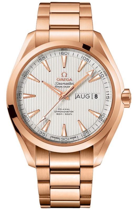 Model: 231.50.43.22.02.002 - CASE = [Material:18kt Rose Gold], [Case Diameter:43], [Case Thickness:15.5mm], [Bezel:Fixed], [Case Back:Skeleton], [Water Resistant:150 Meters - 500 Feet], [Crystal:Scratch Resistant Sapphire], DIAL = [Color:Silver with Linear Textured Design and Rose Gold Index Hour Markers], MOVEMENT = [Type:Automatic Chronometer], [Crown:Screw Down], BAND = [Clasp:Folding], [Type:18kt Rose Gold], (Usually ships in 2 to 4 weeks.)