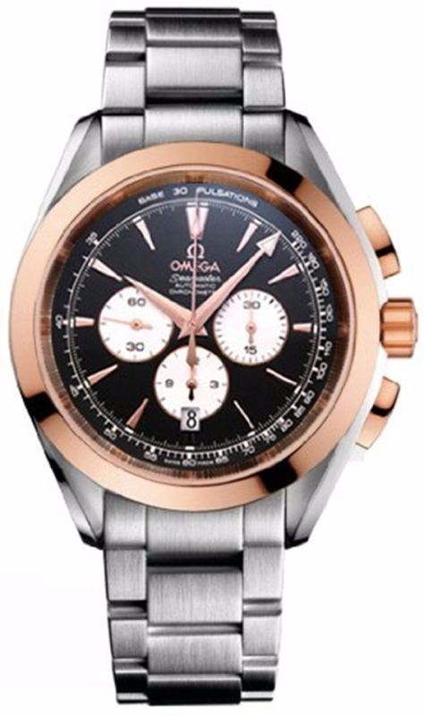 Model: 221.20.42.40.01.002 - CASE = [Material:Brushed and Polished Stainless Steel], [Case Diameter:42.2], [Bezel:Fixed Solid 18k Rose Gold], [Water Resistant:150 Meters - 500 Feet], [Crystal:Scratch Resistant Sapphire],; DIAL = [Color:Black with Silver Sub-s],; MOVEMENT = [Type:Automatic Self Winding Co-Axial Chronometer with Approx. 53hr Power Reserve], [Crown:18k Rose Gold Screw Down],; BAND = [Clasp:Deployment Buckle], [Type:Brushed Stainless Steel], (Usually ships in 2 to 4 weeks.)