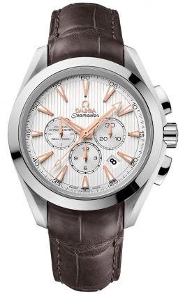 Model: 231.13.44.50.02.001 - CASE = [Material:Stainless Steel], [Case Diameter:44], [Case Back:See-thru Sapphire crystal], [Water Resistant:150 Meters/500 Feet], [Crystal:Scratch Resistant Sapphire], DIAL = [Color:Silver Linear Design Chronograph with Rose Gold Hands and Markers, Date Between 4 and 5], MOVEMENT = [Type:Co Axial Chronometer - Automatic Self Winding Omega 3313 with Approx. 52hr Power Reserve], BAND = [Clasp:Double Push Button Deployment], [Type:Crocodile Brown Leather], (Usually ships in 1 to 2 business days.)