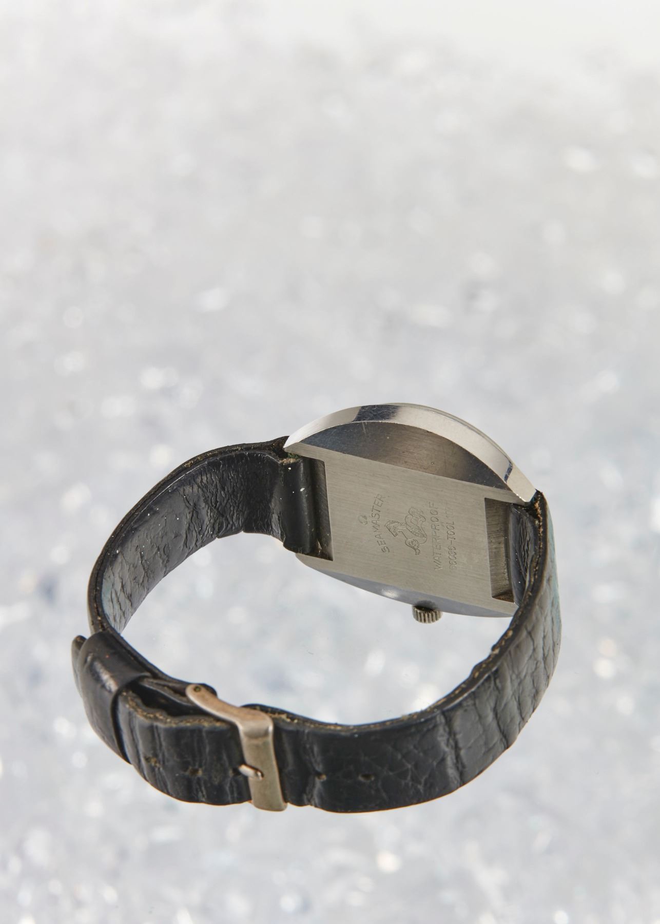 CIRCA: 1969. CASE MATERIAL: Stainless Steel. DIAL DIAMETER: 30mm. BRACELET MATERIAL: Leather. MOVEMENT: Caliber 752 Automatic. FEATURES: Day, Date. WEIGHT: 49.7g. Est. $800-1200 DISCLOSURE: Watches were running at time of photography unless otherwise stated. Service history is unknown unless paperwork is provided. We cannot guarantee accuracy of any of the watches offered. "