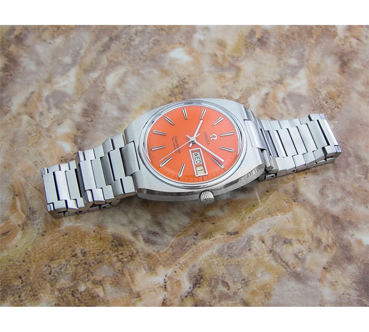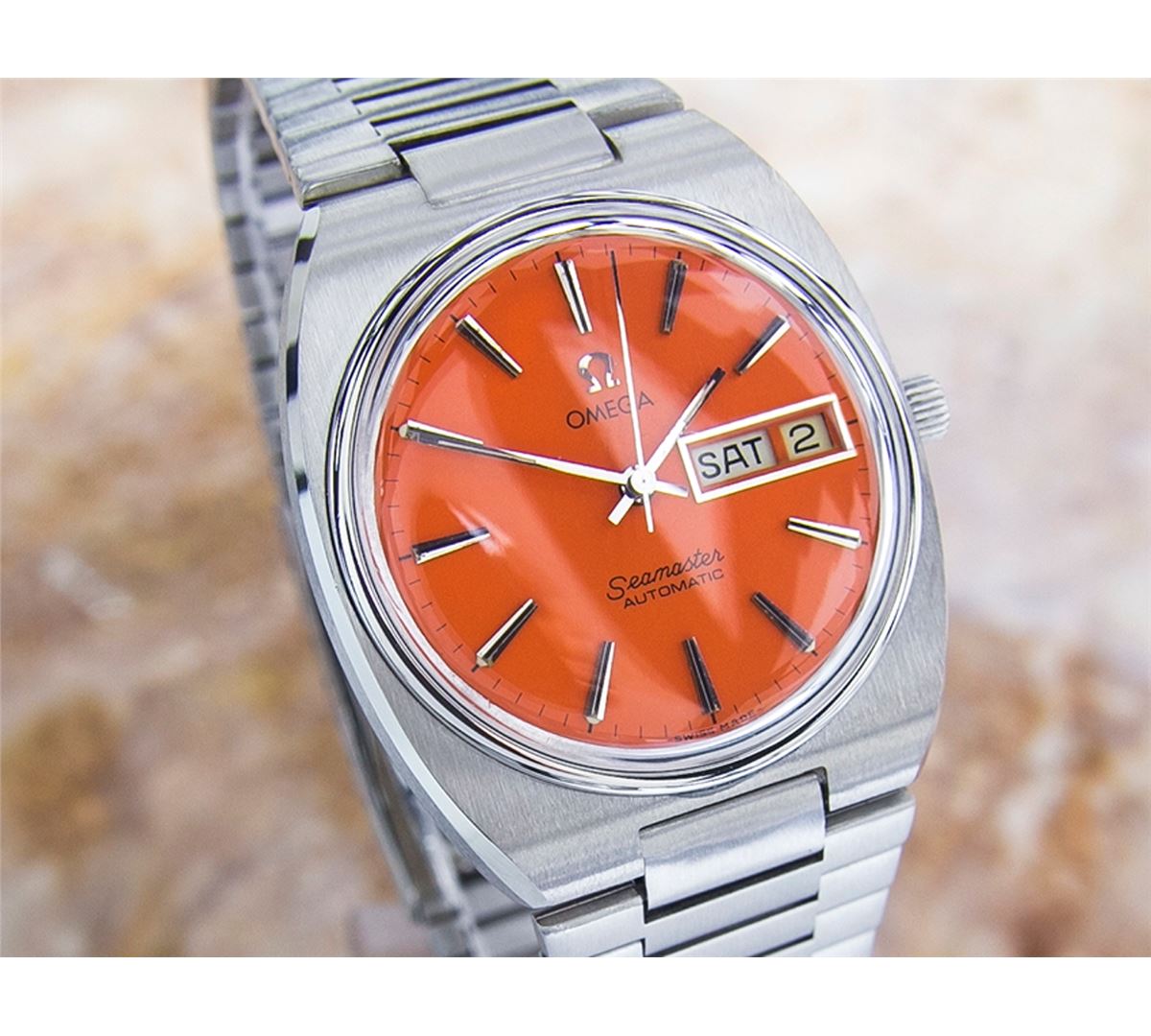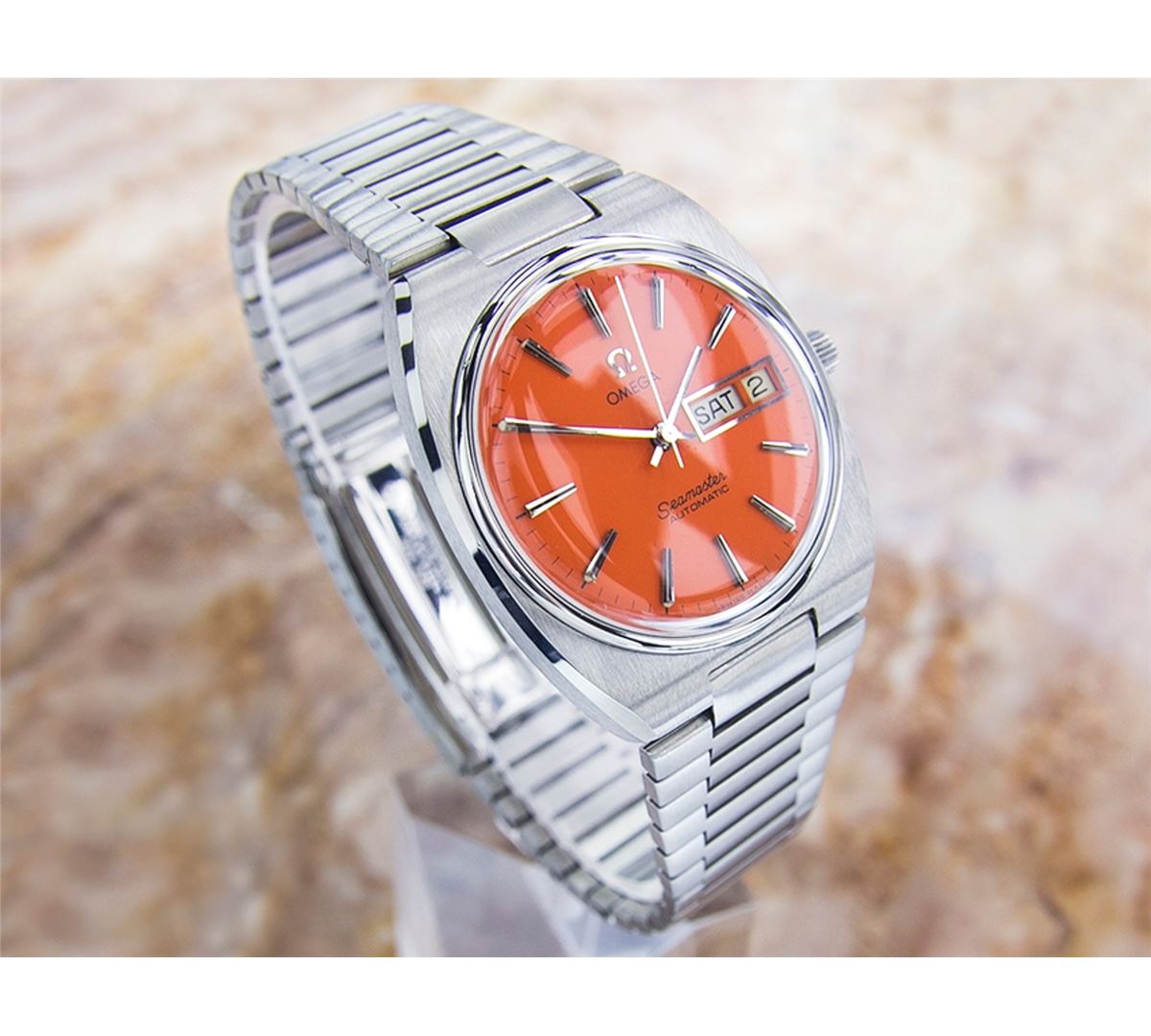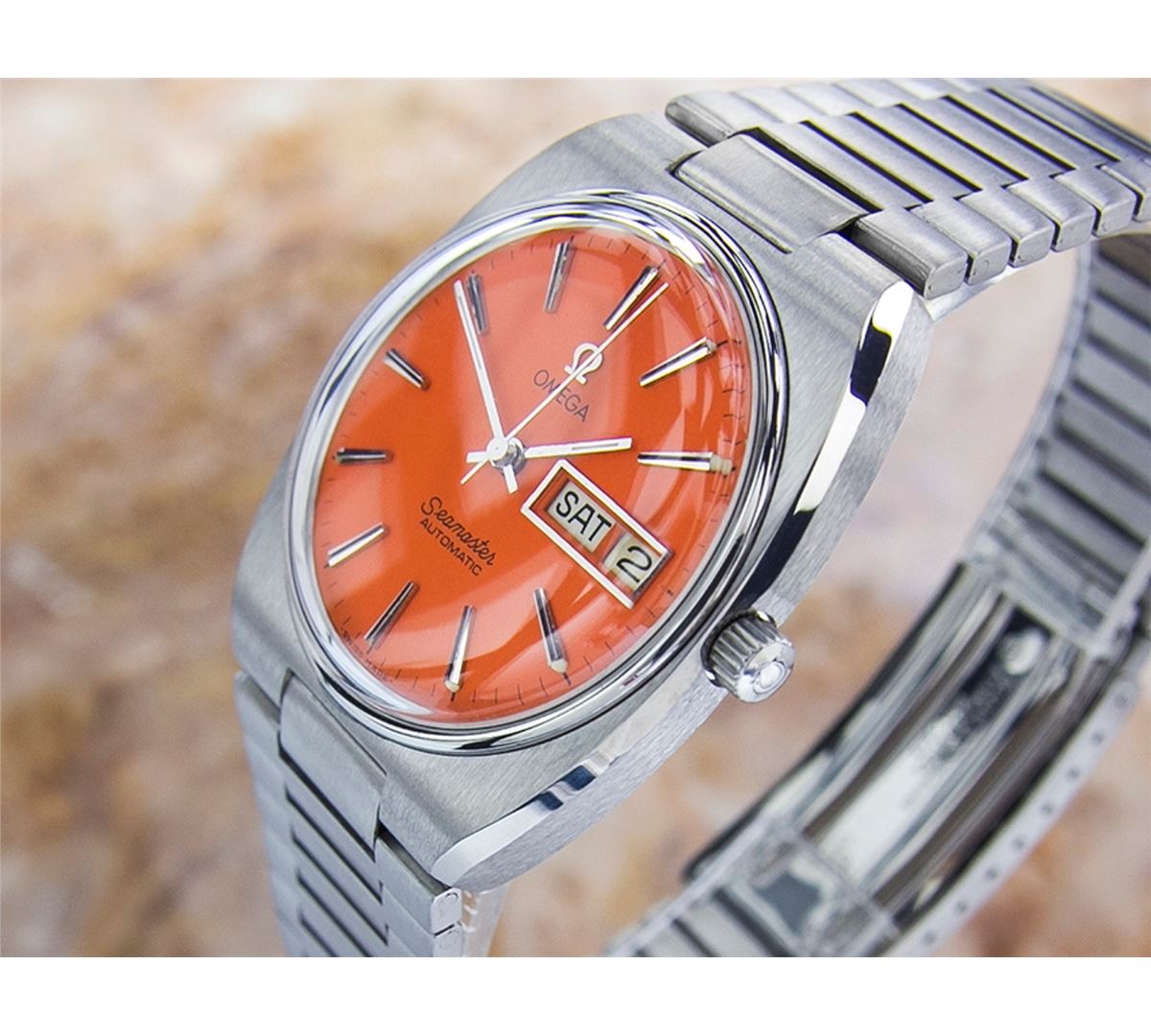 Omega Seamaster Day Date Stainless Steel Automatic Watch. Brand: OMEGA. Model: SEAMASTER. Movement: Automatic. Case Material: Stainless Steel. Crystal: ACRYLIC. Case Size: 40x35. Band: ORIGINAL Stainless Steel BRACELET.