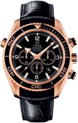 Model: 222.63.46.50.01.001 - CASE = [Material:Brushed and Polished Solid 18k Rose Gold], [Case Diameter:45.5], [Case Thickness:18.2mm], [Bezel:Uni-Directional Rotating, Aluminum and PVD Coated], [Case Back:Solid], [Water Resistant:600 Meters - 2000 Feet], [Crystal:Scratch Resistant Sapphire], DIAL = [Color:Black Chronograph with Date Between 4 and 5], MOVEMENT = [Type:Automatic Self Winding COSC Calibre 3313 with Approx. 52hr Power Reserve], [Crown:Screw Down Crown and Helium Escape Valve], BAND = [Clasp:18k Rose Gold Deployment Buckle], [Type:Black Crocodile Leather], (Usually ships in 2 to 4 weeks.)