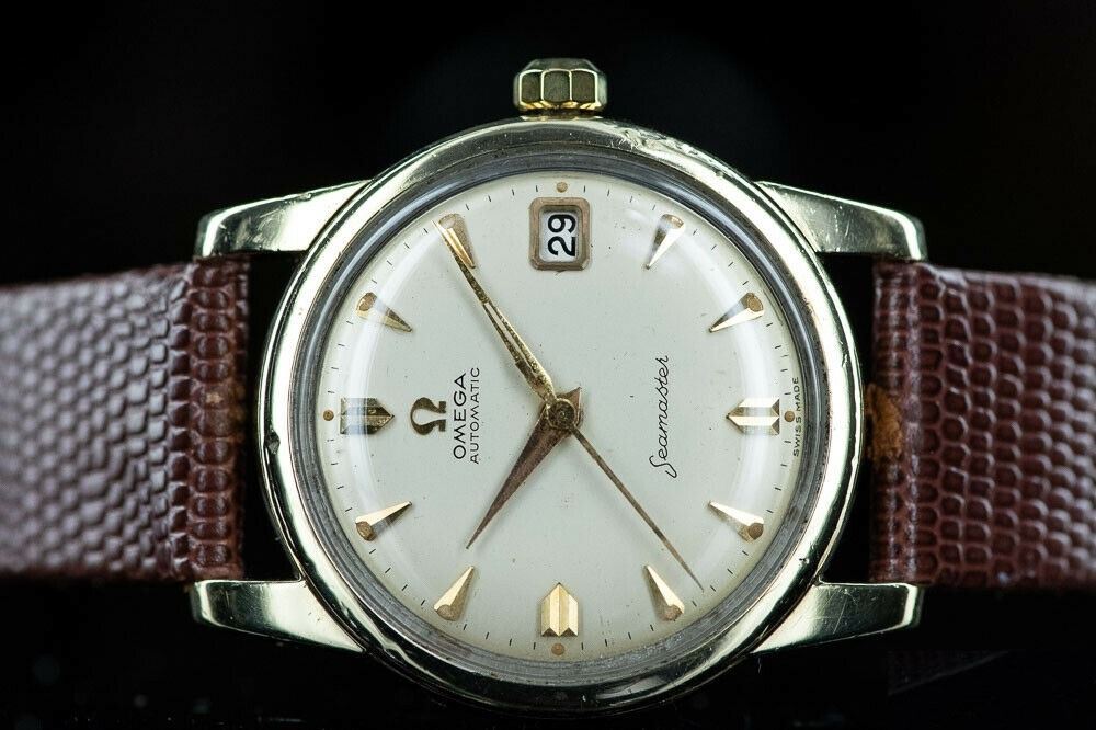 Model: Men's Vintage Omega Seamaster Gold Dial SS & Brown Leather Band Watch
