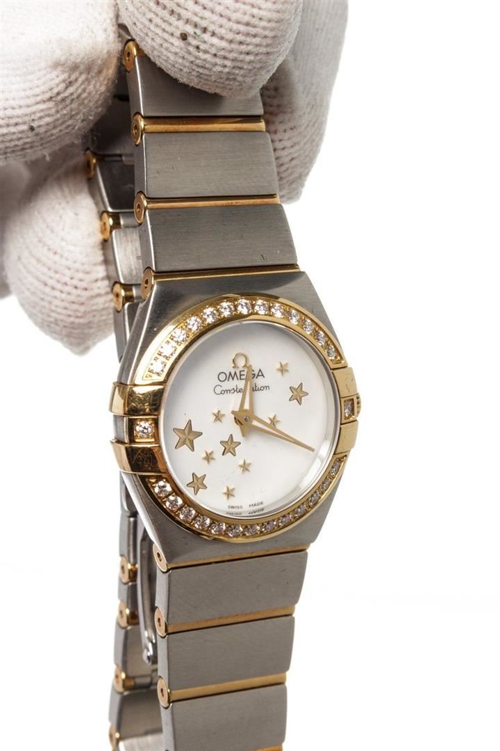 Omega Silver Gold Constellation Quadrella Watch with silver gold-tone hardware. Condition: Pre-Owned Good