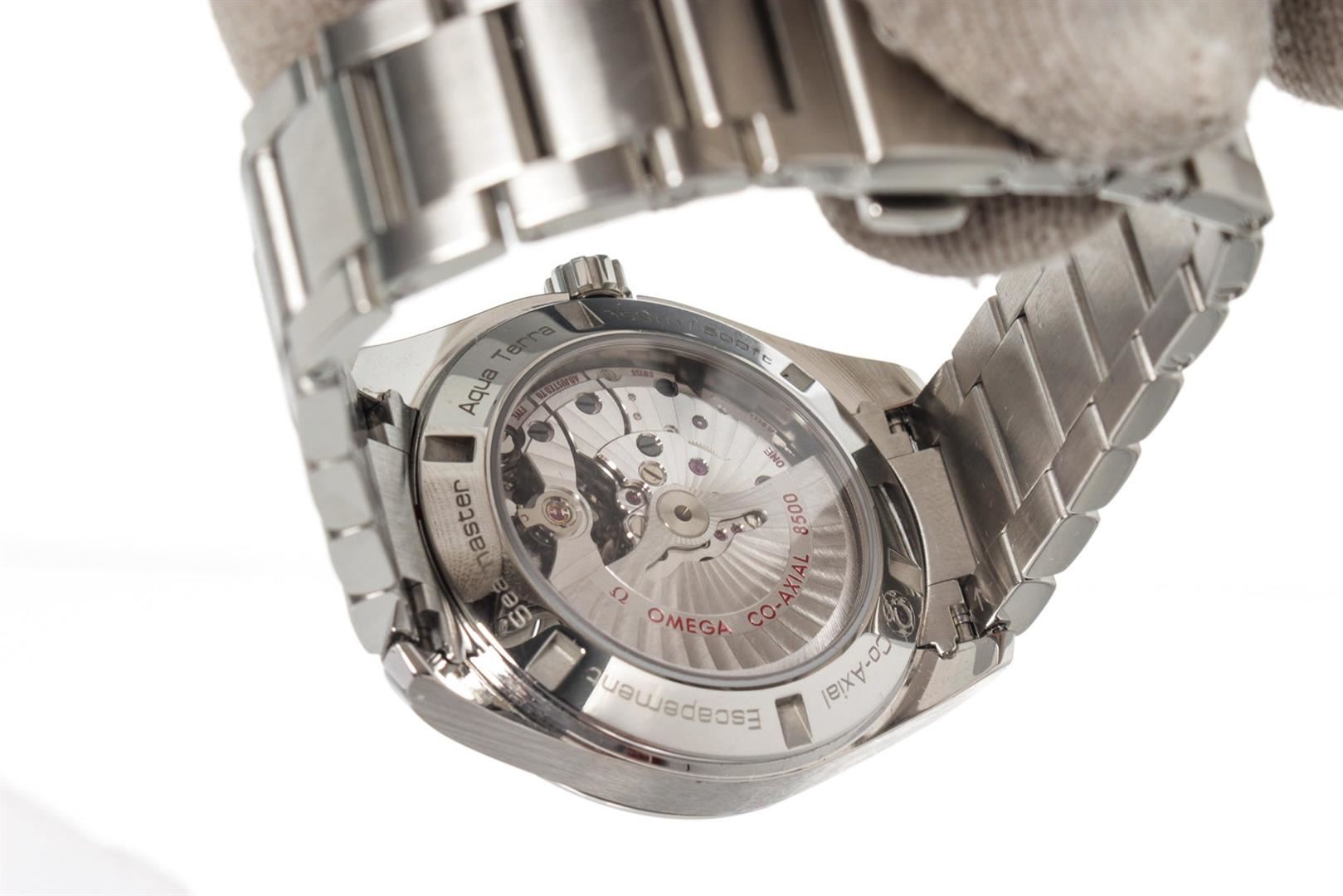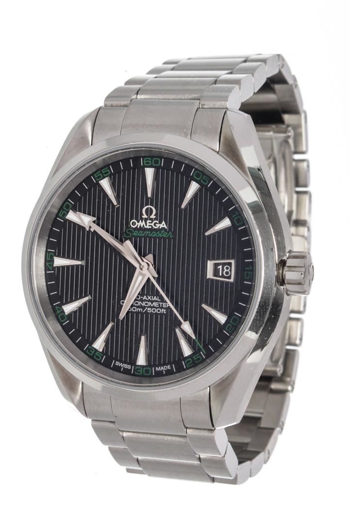 Omega Silver Seamaster Aqua Watch with silver tone hardware.
