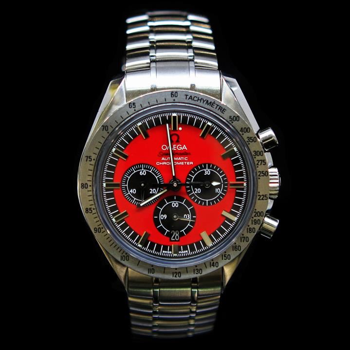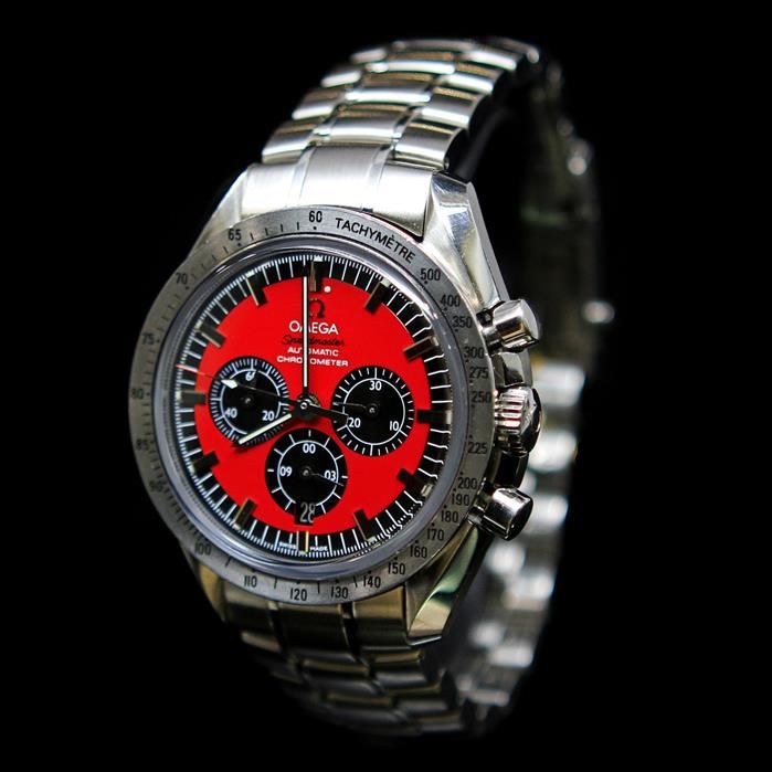****** Omega SpeedMaster Legend Stainless Steel Men's Wristwatch ****** One Mens, Omega SpeedMaster Legend SS electronically tested and polished / Case: Steel 40mm / Dial: Red / Bracelet: Steel / Standard clasp / Condition: Pre-owned / good /