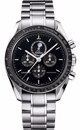 Model: 311.30.44.32.01.001 - CASE = [Material:Brushed and Polished Steel], [Case Diameter:44.25], [Bezel:Fixed with Tachymeter Scale], [Case Back:See-thru Sapphire crystal], [Water Resistant:100 Meters/330 Feet], [Crystal:Anti-Reflective Scratch Resistant Sapphire],; DIAL = [Color:Black Aventurine (has a star field effect), Chronograph with Moonphase and Date Indicator at 12],; MOVEMENT = [Type:Manual Winding, Omega Calibre 1866 with a 48Hr Power Reserve.],; BAND = [Clasp:Double Push Button Deployment], [Type:Brushed and Polished Steel], (Usually ships in 2 to 4 weeks.)