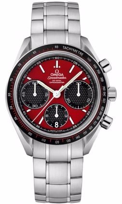 Model: 326.30.40.50.11.001 - CASE = [Material:Brushed and Polished Steel], [Case Diameter:40], [Bezel:Aluminum Filled with Tachymeter Scale], [Case Back:Solid, Engraved with Seahorse Medallion], [Water Resistant:100 Meters - 330 Feet], [Crystal:Scratch Resistant Sapphire],; DIAL = [Color:Red Chronograph with Black 'Clous de Paris' Design Sub-Dials, Date at 6],; MOVEMENT = [Type:Co Axial Chronometer with SI 14 Balance Wheel - Automatic Self Winding Omega 3330 with Approx. 50hr Power Reserve],; BAND = [Clasp:Double Push Button Deployment], [Type:Steel Brushed and Polished], (Usually ships in 1 to 2 business days.)