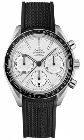 Model: 326.32.40.50.02.001 - CASE = [Material:Brushed and Polished Steel], [Case Diameter:40], [Bezel:Aluminum Filled with Tachymeter Scale], [Case Back:Solid, Engraved with Seahorse Medallion], [Water Resistant:100 Meters - 330 Feet], [Crystal:Scratch Resistant Sapphire], DIAL = [Color:Silver Chronograph with 'Clous de Paris' Design Sub-Dials, Date at 6], MOVEMENT = [Type:Co Axial Chronometer with SI 14 Balance Wheel - Automatic Self Winding Omega 3330 with Approx. 50hr Power Reserve], BAND = [Clasp:Double Push Button Deployment], [Type:Black Rubber], (Usually ships in 2 to 4 weeks.)