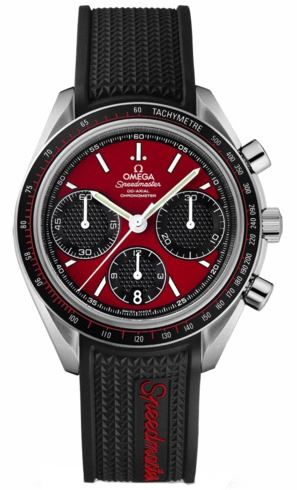Model: 326.32.40.50.11.001 - CASE = [Material:Brushed and Polished Steel], [Case Diameter:40], [Bezel:Aluminum Filled with Tachymeter Scale], [Case Back:Solid, Engraved with Seahorse Medallion], [Water Resistant:100 Meters - 330 Feet], [Crystal:Scratch Resistant Sapphire],; DIAL = [Color:Red Chronograph with Black 'Clous de Paris' Design Sub-Dials, Date at 6],; MOVEMENT = [Type:Co Axial Chronometer with SI 14 Balance Wheel - Automatic Self Winding Omega 3330 with Approx. 50hr Power Reserve],; BAND = [Clasp:Double Push Button Deployment], [Type:Black Rubber], (Usually ships in 1 to 2 weeks.)