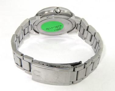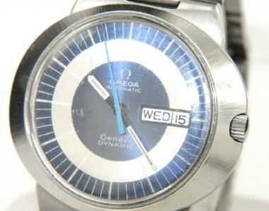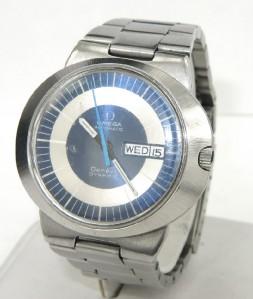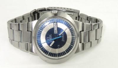 Omega Stainless Steel Automatic Day-Date Watch. The total weight of the watch is 95.2 grams. The measurement of watch head: 32 x 32 mm and 10 mm in thickness. The length of watch: 7.25". The chain is 15 mm wide. Swiss Made. Water Resistant.