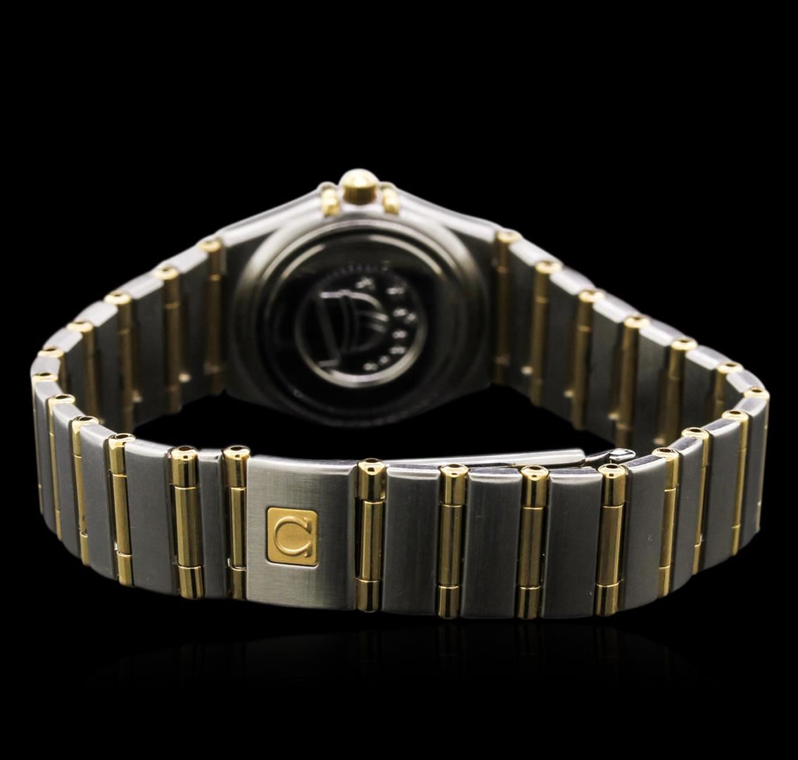 Movement: Quartz. Case: Stainless steel and 18KT yellow gold. Bezel: 18KT yellow gold. Crystal: Scratch resistant sapphire crystal. Dial: Mother of pearl with diamond hour markers. Band: Stainless steel and 18KT yellow gold. Watch will fit up to a 7" wrist. Classic watch in excellent condition. Recently serviced.