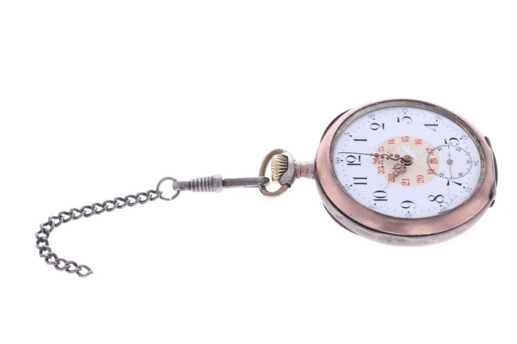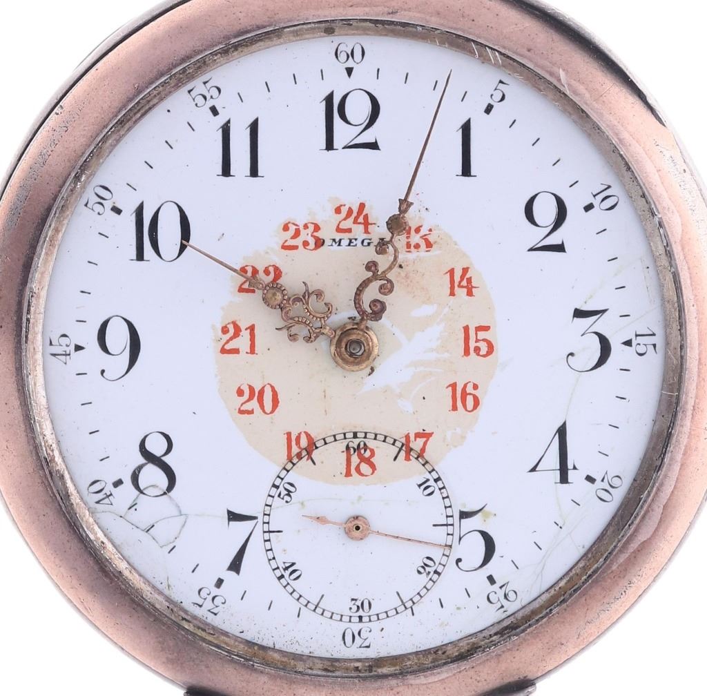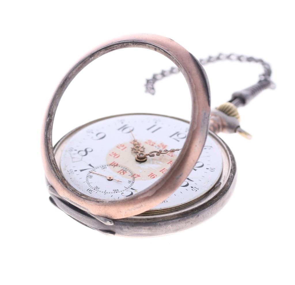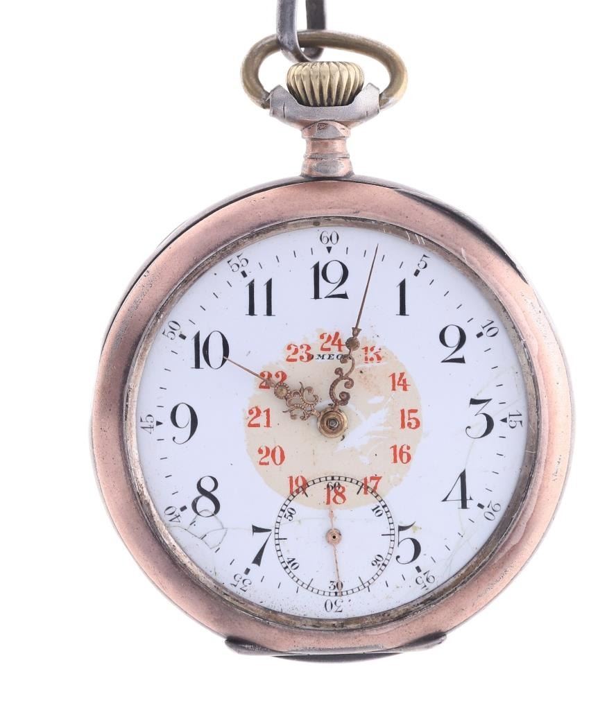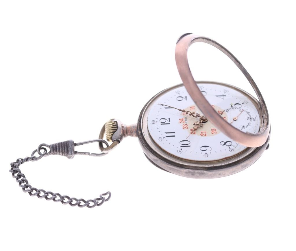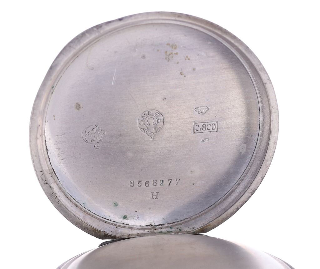 Featured in this lot is this Omega Watch Co. 15J pocket watch circa 1930's. The watch features a wonderfully and professionally crafted 0.800 coin silver construction that shows 15 Jewels, case is marked 0,800 for 80% silver. The watch is marked on the face Omega. Both the inside lids of the case is marked 3568277 H. The mechanism is marked as follows: Omega. The condition of this pocket watch is good with the pocket chain sundered but otherwise shows good overall condition. The measurements of this pocket watch from chain to watch is 5 5/8" and the watch measures 2 1/2" x 2" x 5/8".
