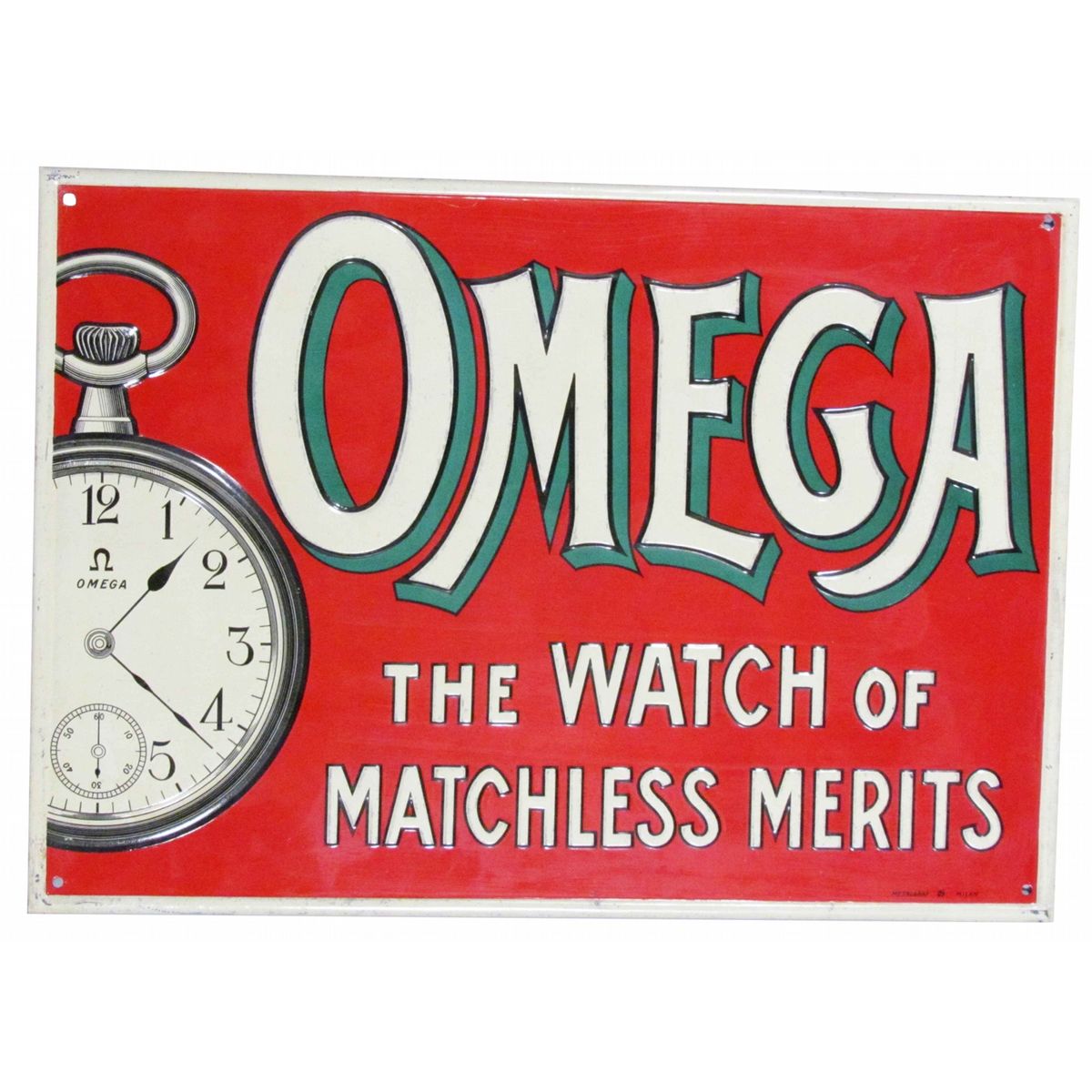 Omega Watches Embossed Tin Sign. Excellent condition. 13 1/2 X 9 1/2 inches.