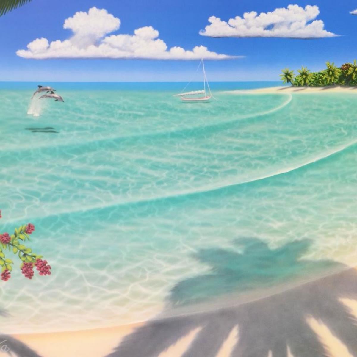 "On Holiday" is a limited edition lithograph on paper by Dan Mackin, numbered and hand signed by the artist. Includes Letter of Authenticity. Measures approx. 32" x 24" (border), 28" x 20" (image).