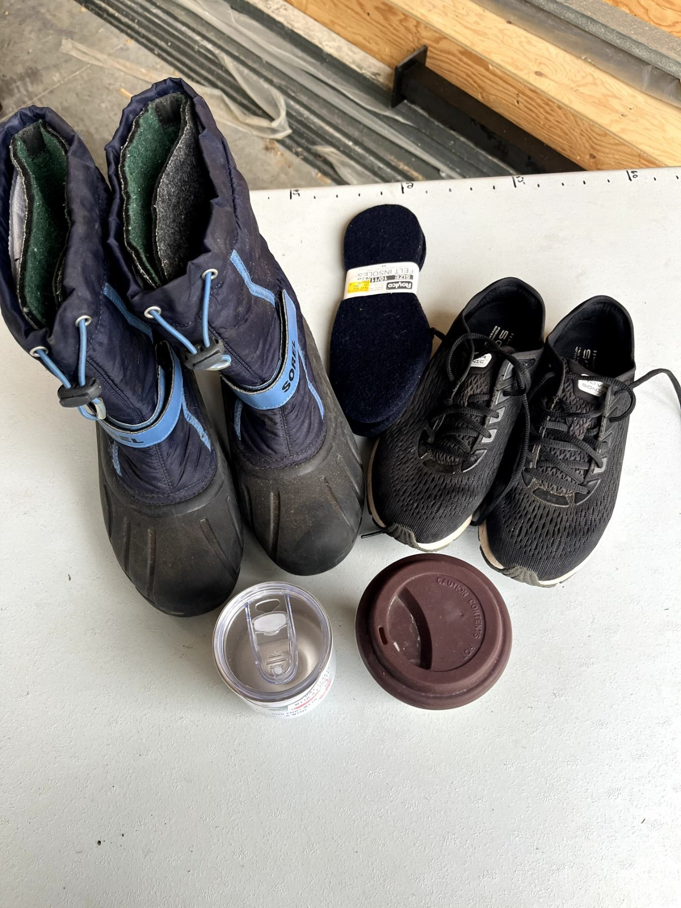 Kids Sorel Boots (Size 7), sneakers (Ladies 7.5), Go Cups, Bento Box