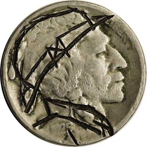 <B>On a VG 1925-P Nickel.</B></I> Although this is an original piece (by an unknown artist), it only grades a Low Below Average because of the punching method used for the entire alteration. It appears that the point of a small screwdriver was used to make all the marks on this coin, suggesting that the artist had limited ability and creativity.<BR><BR><b>Shipping:</b> Coin/Currency (<a target="_blank" href="http://www.heritageauctions.com/common/shipping.php">view shipping information</a>)