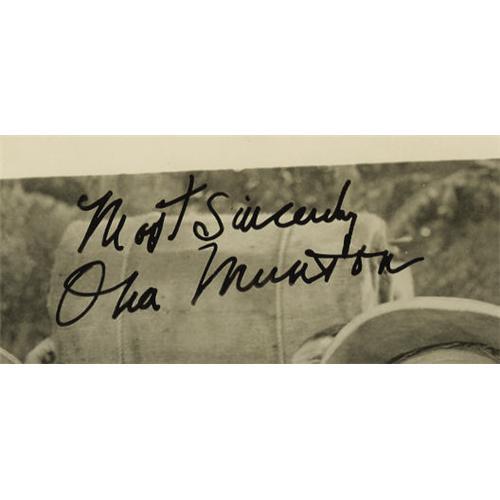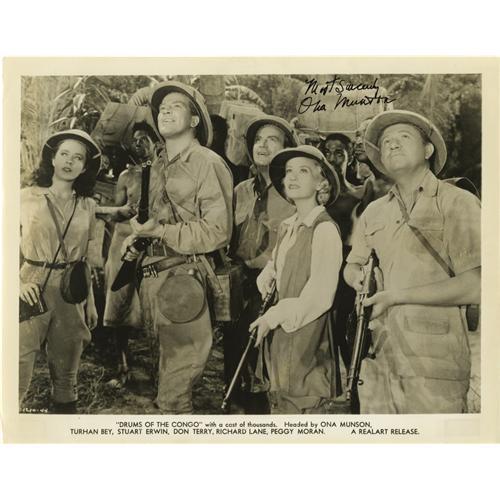 <B>Ona Munson Signed Photo.</B></I> A vintage b&w 8" x 10" promo photo for the 1942 adventure movie <I>Drums of the Congo,</B></I> inscribed and signed by Munson in black ink. In Very Fine condition with mild wear and tanning. <I>Accompanied by LOA from PSA/DNA.</B></I><BR><BR><b>Shipping:</b> Flat Material, Small (<a target="_blank" href="http://www.heritageauctions.com/common/shipping.php">view shipping information</a>) <BR><BR><B>Important not
