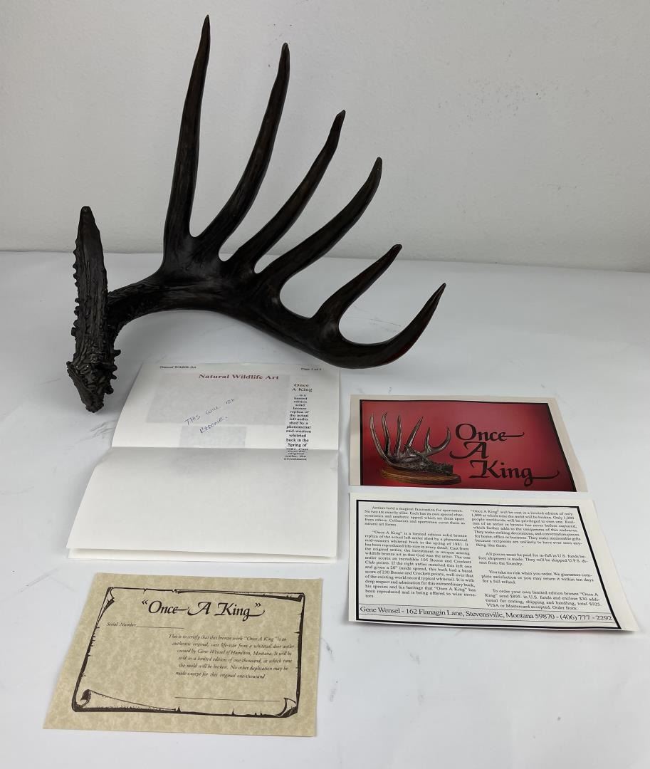 Gene Wensel Collection (Brothers of the Bow). Serial number is #1 making it the first ever made. Paperwork included. Bronze of actual shed found in Shelby County, Illinois in 1981. Edition of 150.