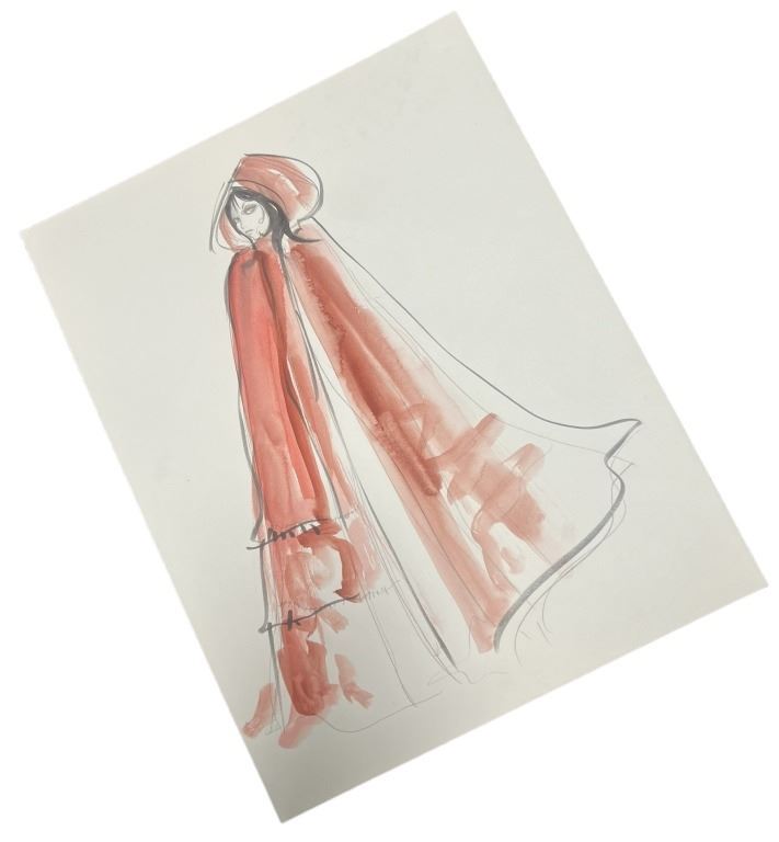 Original costume design artwork (Hand Drawn on art paper) for "Red Riding Hood" used in the production of the fantasy adventure drama television series 'Once Upon a Time' (2011-2018), that aired for seven seasons on ABC from October 23, 2011 to May 18, 2018.