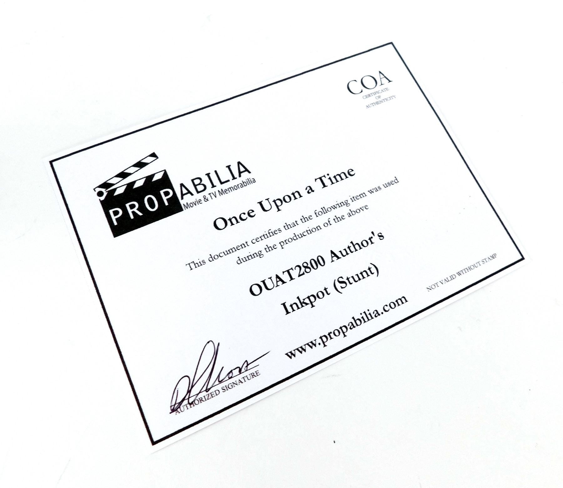 Propabilia guarantees the attribution of each lot of Property as stated in the title block of that lot of Property in the Auction catalogue, each lot of property comes with its own Certificate of Authenticity (COA). Bidders should be aware that multiple examples of props and costumes are frequently used during production (hence the Propmasters saying 'one and done'), usually as few as 3 or as many as 6 or more pieces may be used to represent the item on screen. It is often impossible to determine whether a specific piece has been used on-camera. Any specific details about the property known to Propabilia will be noted within the description, but no warranties are given by Propabilia as to that description.