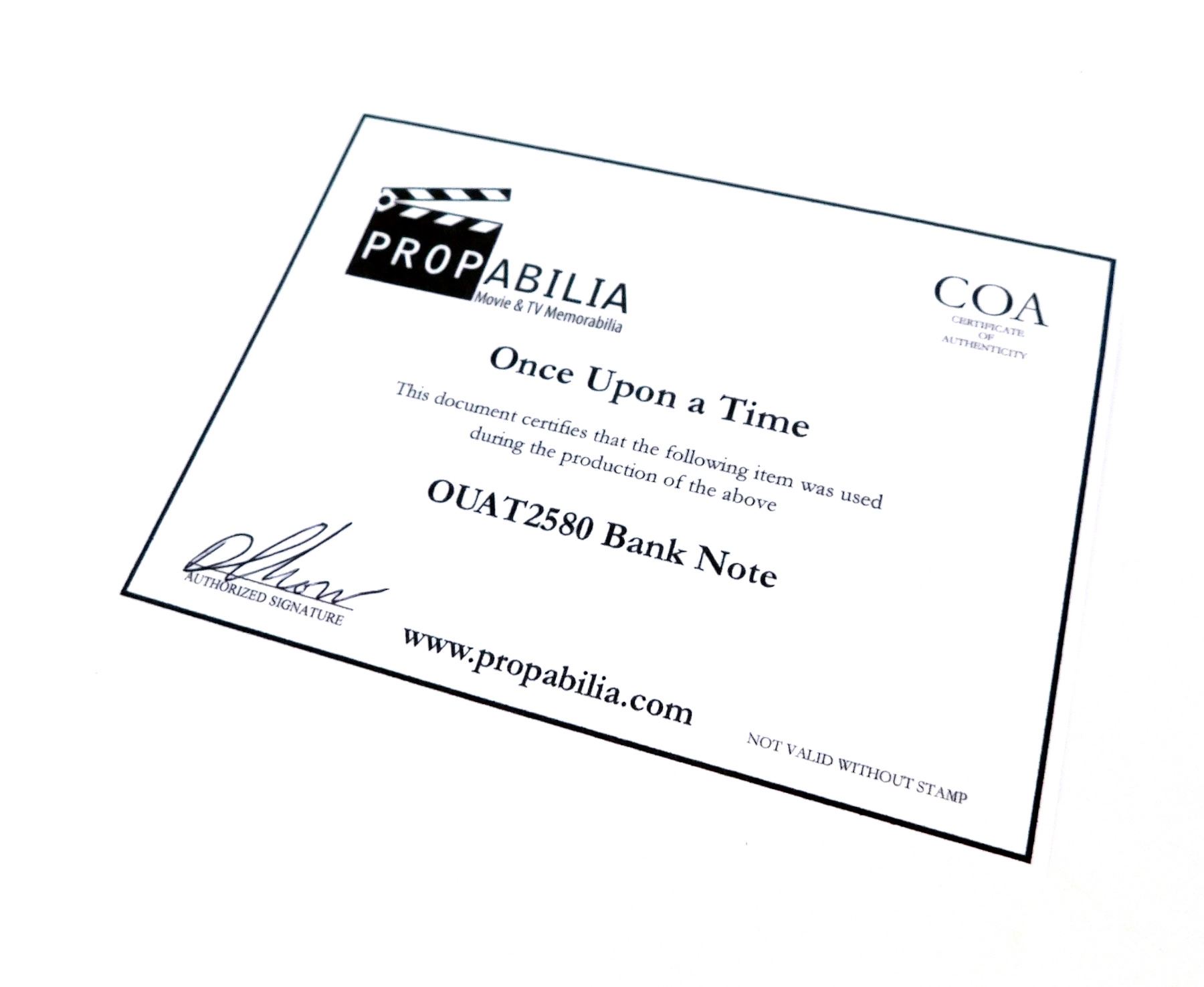 This sbank note was acquired by the production for use in Once Upon a Time' (ABC, 2011-2018).