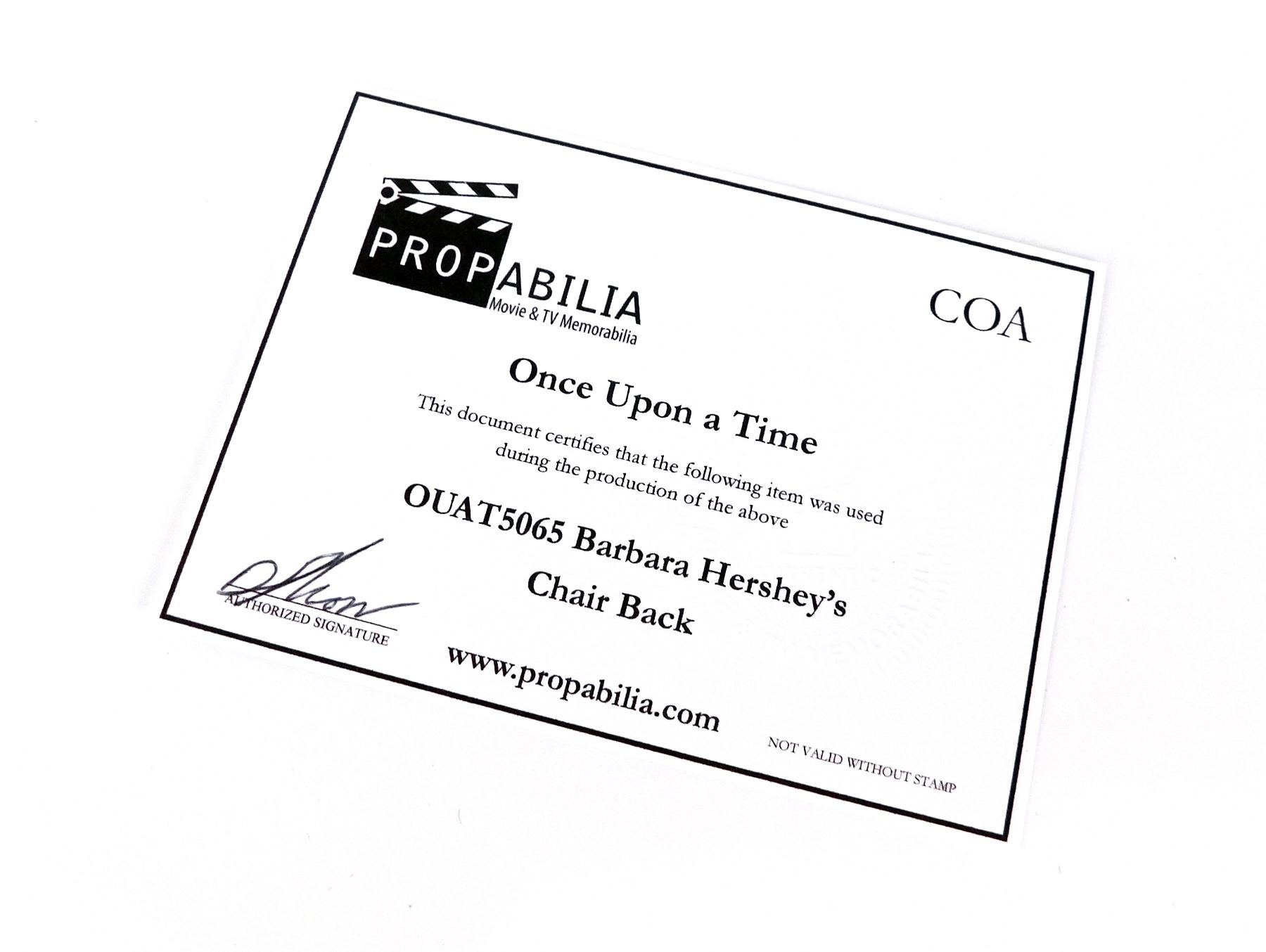 This chair back was acquired by the production for use in 'Once Upon a Time' (ABC, 2011-2018).