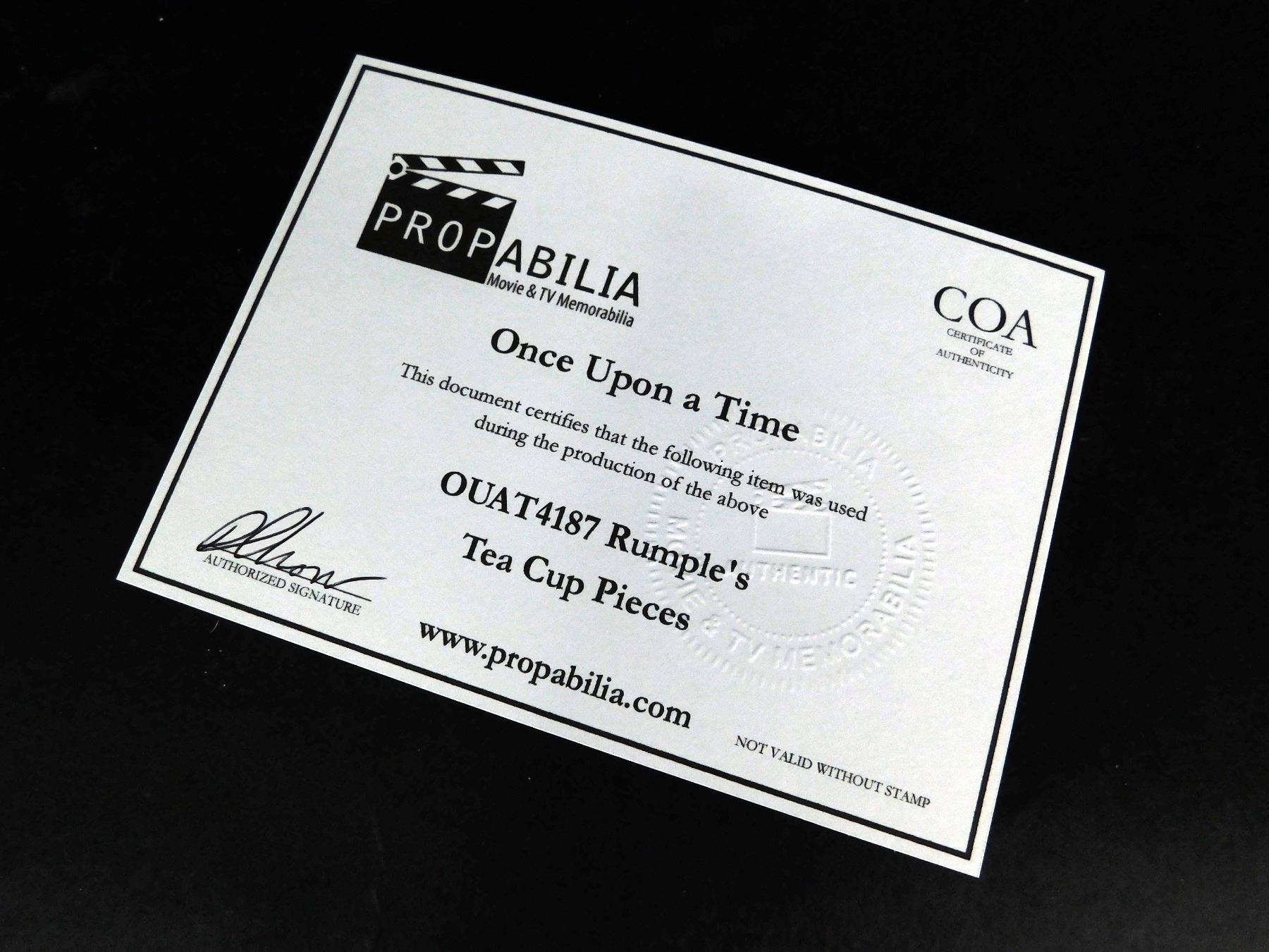 Propabilia guarantees the attribution of each lot of Property as stated in the title block of that lot of Property in the Auction catalogue, each lot of property comes with its own Certificate of Authenticity (COA). Bidders should be aware that multiple examples of props and costumes are frequently used during production (hence the Propmasters saying 'one and done'), usually as few as 3 or as many as 6 or more pieces may be used to represent the item on screen. It is often impossible to determine whether a specific piece has been used on-camera. Any specific details about the property known to Propabilia will be noted within the description, but no warranties are given by Propabilia as to that description.