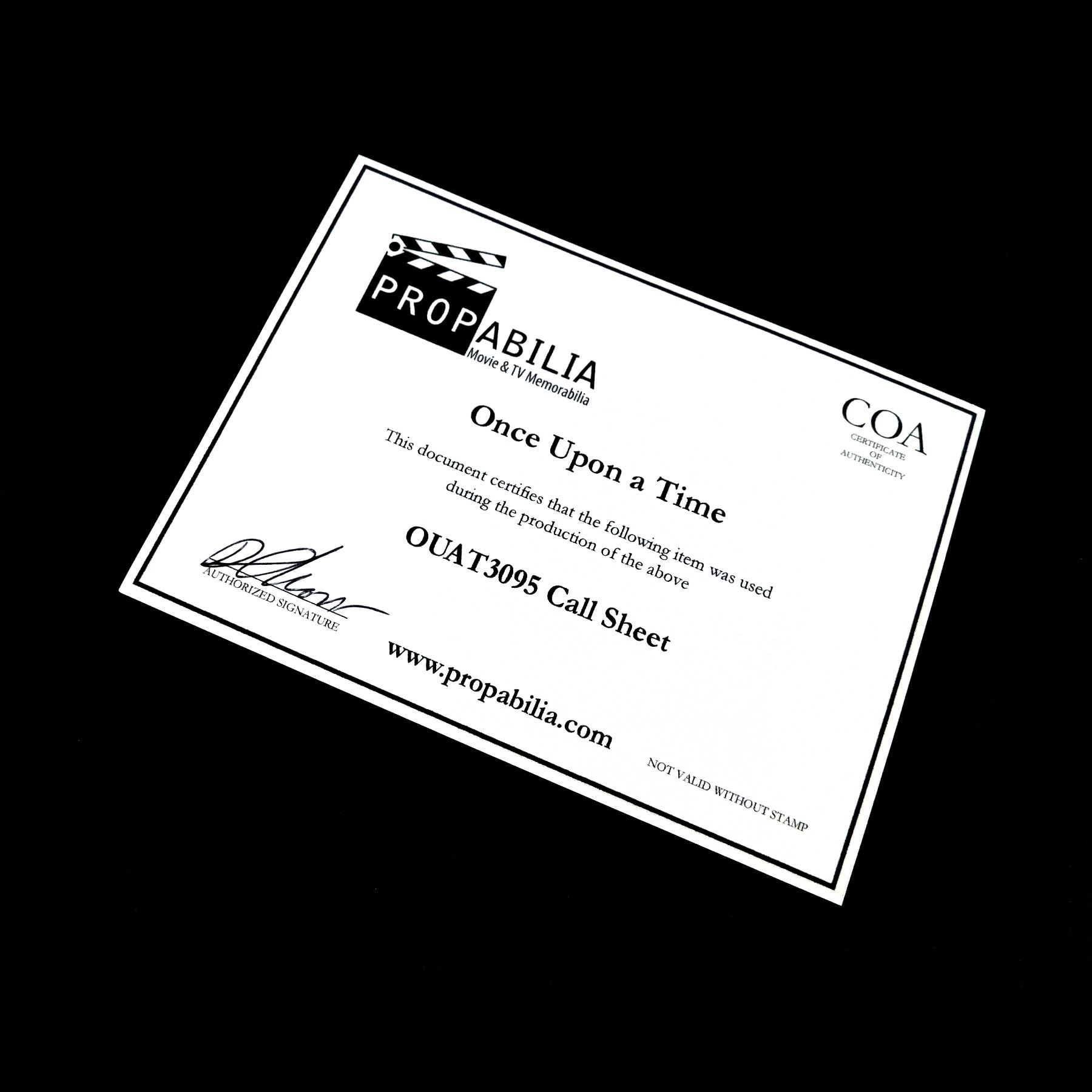 This call sheet was acquired by the production for use in 'Once Upon a Time' (ABC, 2011-2018).
