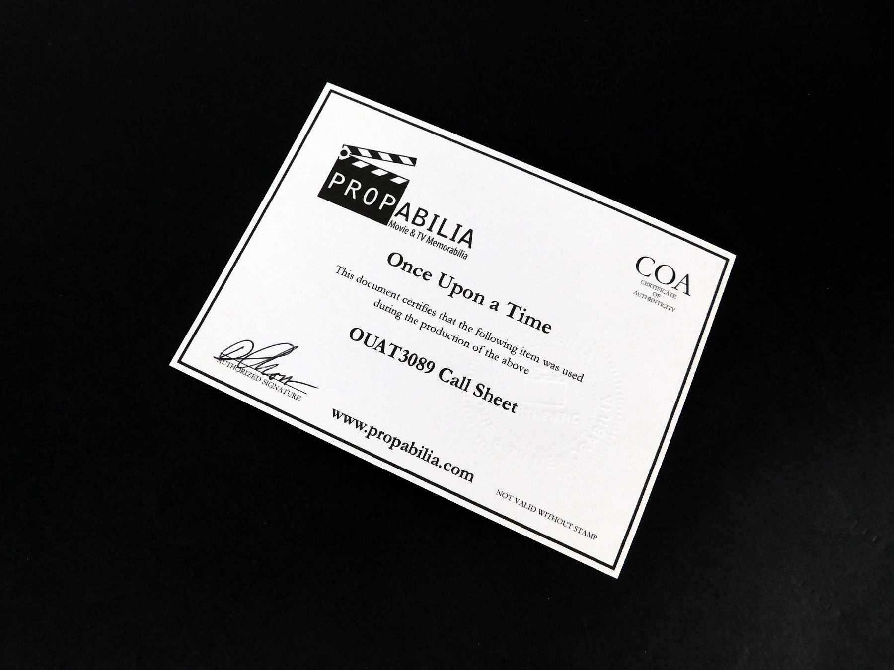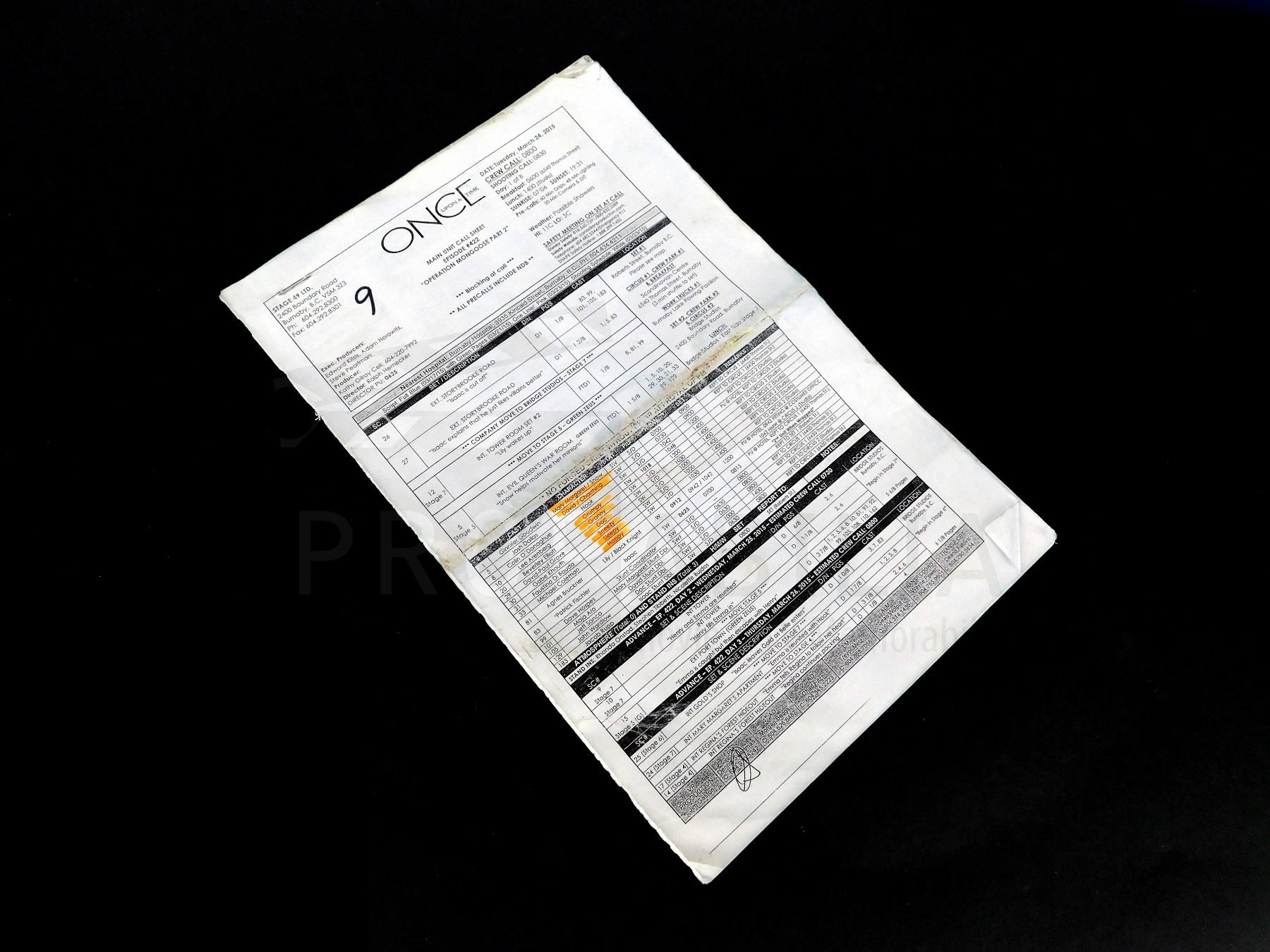 This call sheet was acquired by the production for use in 'Once Upon a Time' (ABC, 2011-2018).