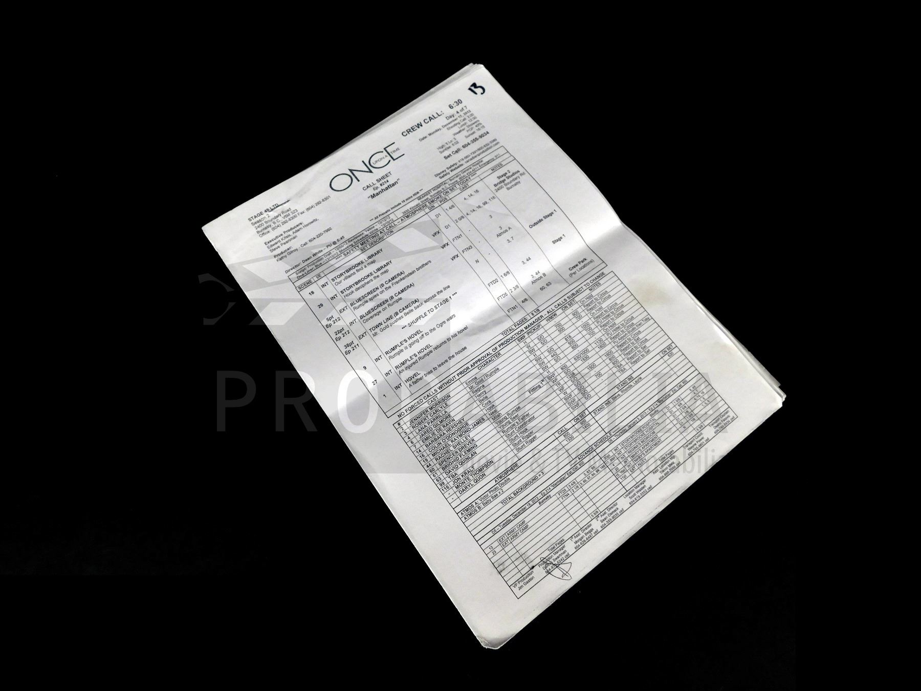 This Call Sheet was acquired by the production for use in 'Once Upon a Time' (ABC, 2011-2018).