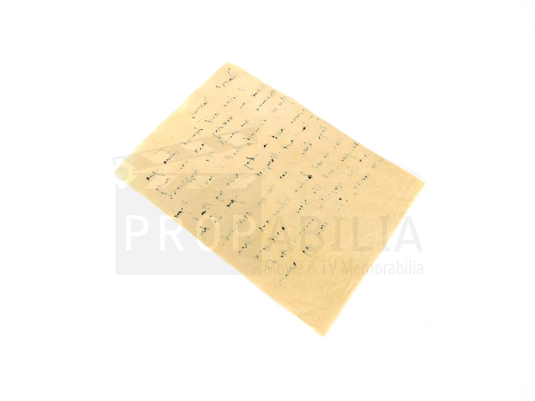 Propabilia guarantees the attribution of each lot of Property as stated in the title block of that lot of Property in the Auction catalogue, each lot of property comes with its own Certificate of Authenticity (COA). Bidders should be aware that multiple examples of props and costumes are frequently used during production (hence the Propmasters saying 'one and done'), usually as few as 3 or as many as 6 or more pieces may be used to represent the item on screen. It is often impossible to determine whether a specific piece has been used on-camera. Any specific details about the property known to Propabilia will be noted within the description, but no warranties are given by Propabilia as to that description.