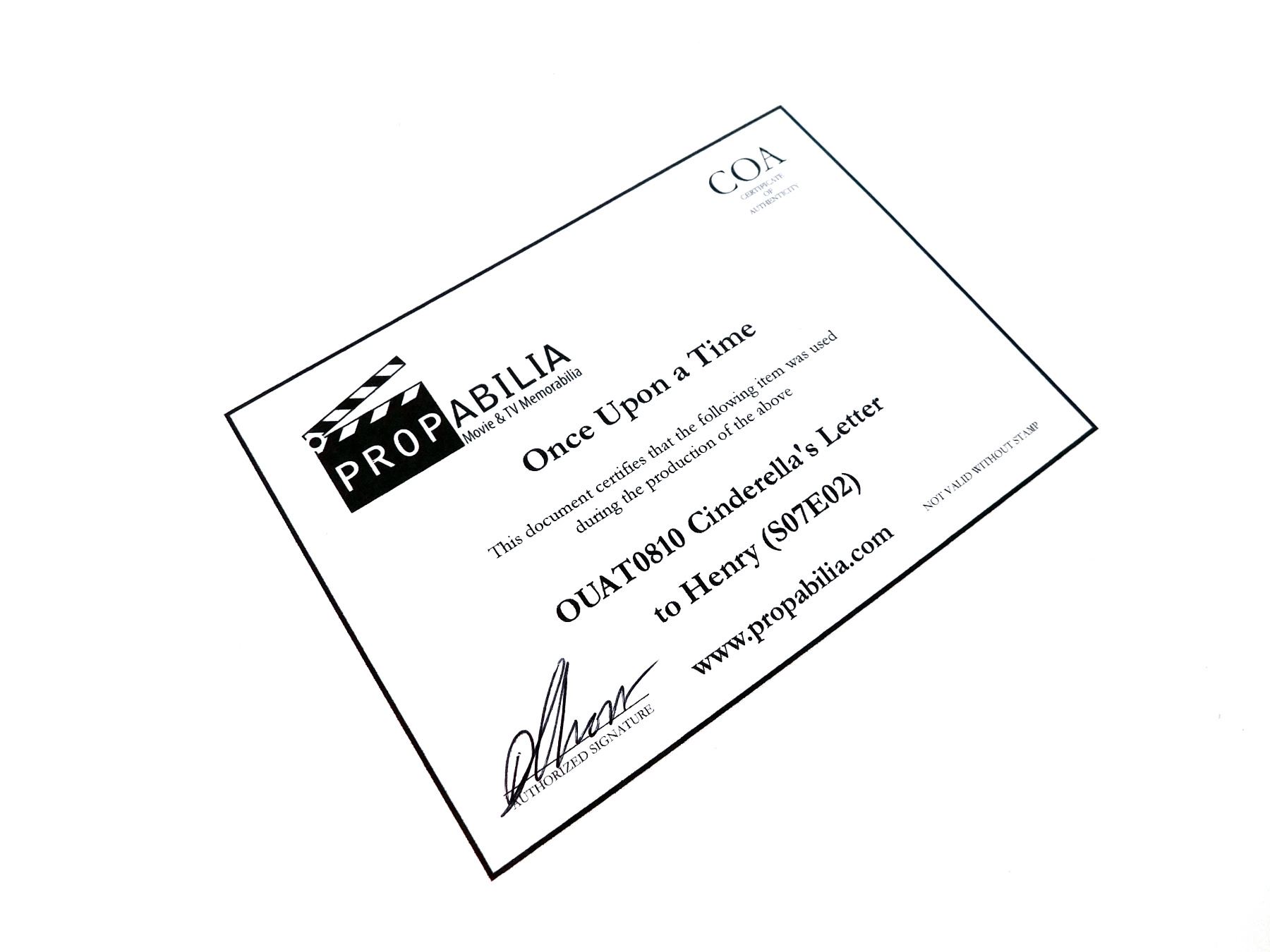 This letter was acquired by the production for use in 'Once Upon a Time' (ABC, 2011-2018).