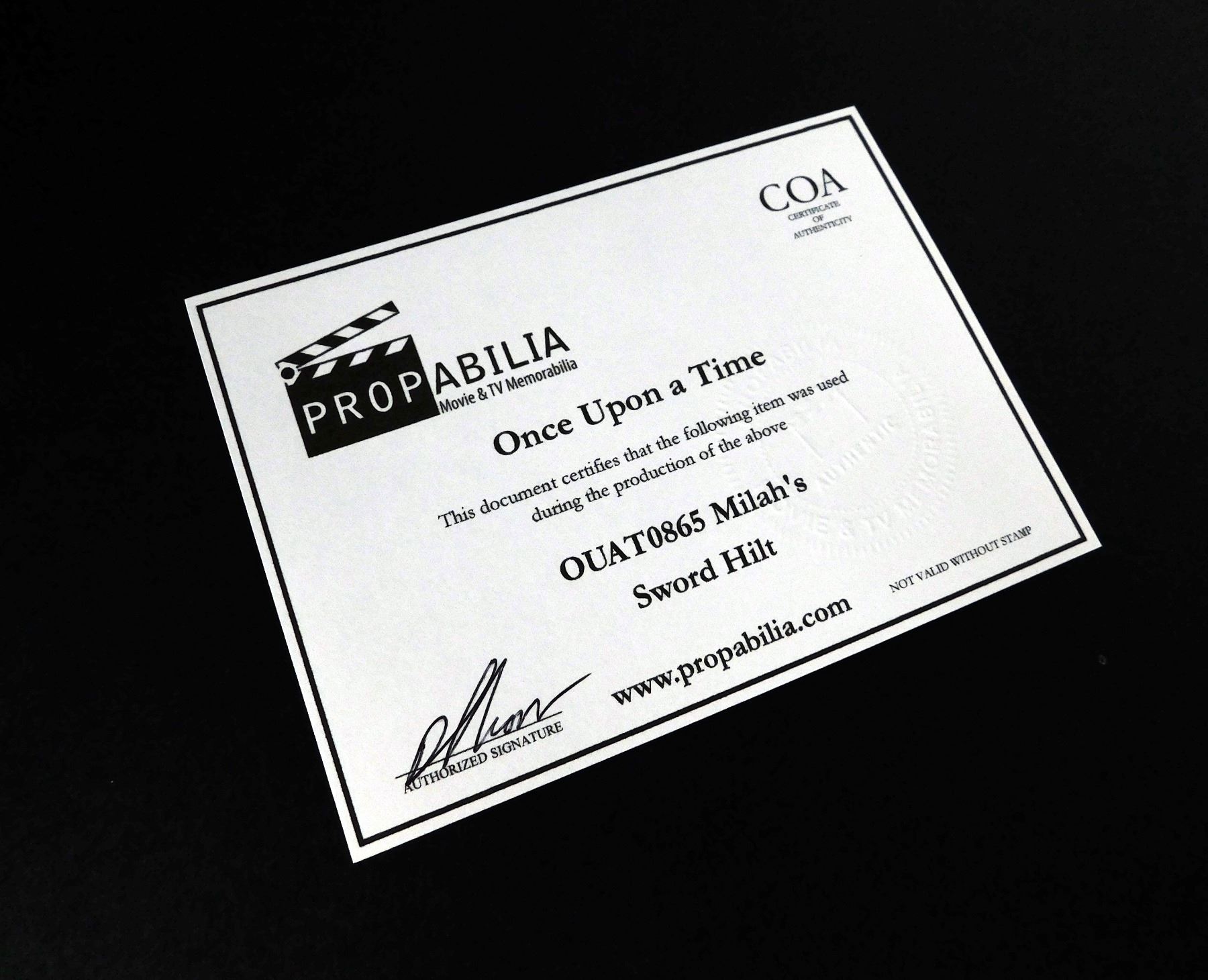 Propabilia guarantees the attribution of each lot of Property as stated in the title block of that lot of Property in the Auction catalogue, each lot of property comes with its own Certificate of Authenticity (COA). Bidders should be aware that multiple examples of props and costumes are frequently used during production (hence the Propmasters saying 'one and done'), usually as few as 3 or as many as 6 or more pieces may be used to represent the item on screen. It is often impossible to determine whether a specific piece has been used on-camera. Any specific details about the property known to Propabilia will be noted within the description, but no warranties are given by Propabilia as to that description.