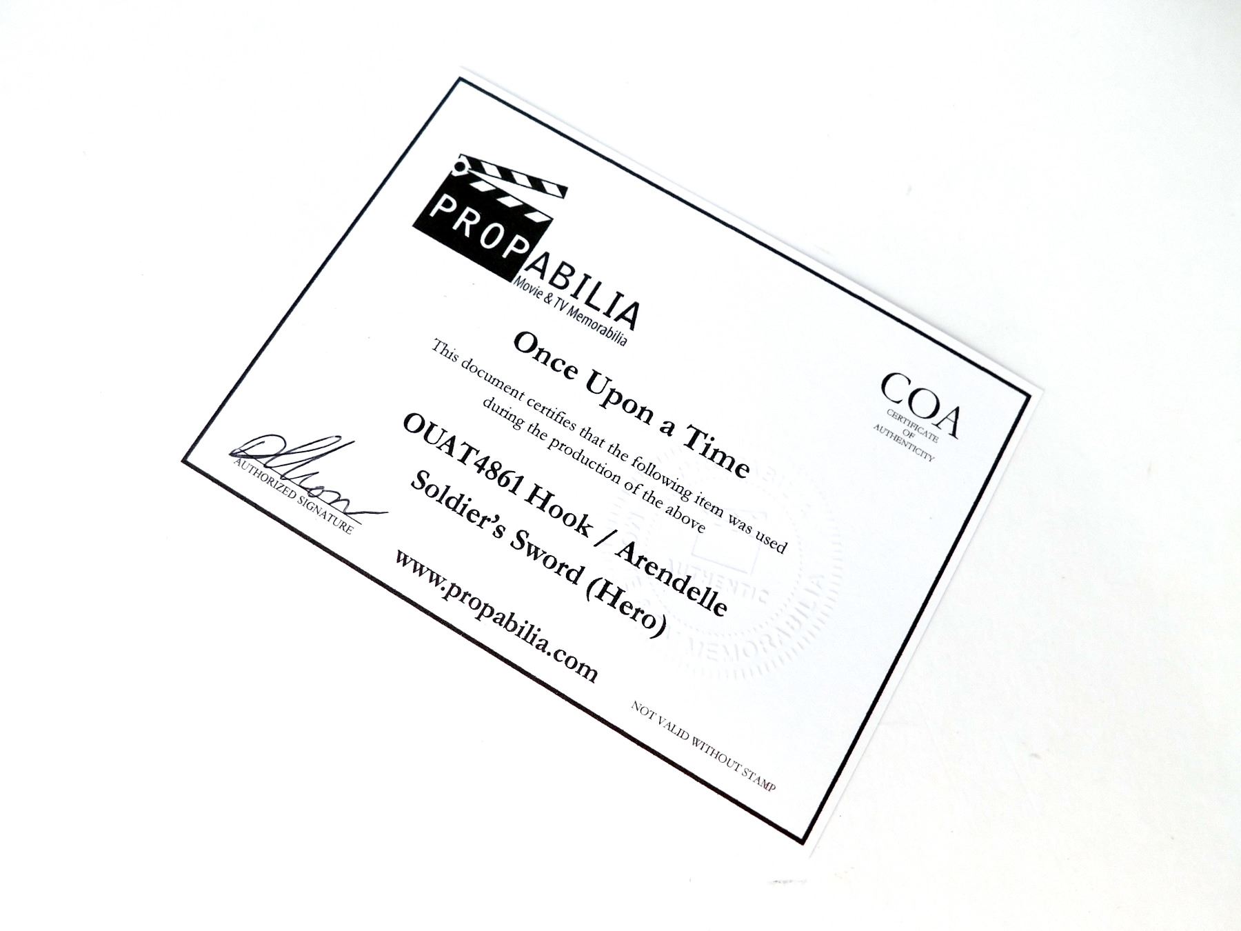Propabilia guarantees the attribution of each lot of Property as stated in the title block of that lot of Property in the Auction catalogue, each lot of property comes with its own Certificate of Authenticity (COA). Bidders should be aware that multiple examples of props and costumes are frequently used during production (hence the Propmasters saying 'one and done'), usually as few as 3 or as many as 6 or more pieces may be used to represent the item on screen. It is often impossible to determine whether a specific piece has been used on-camera. Any specific details about the property known to Propabilia will be noted within the description, but no warranties are given by Propabilia as to that description.