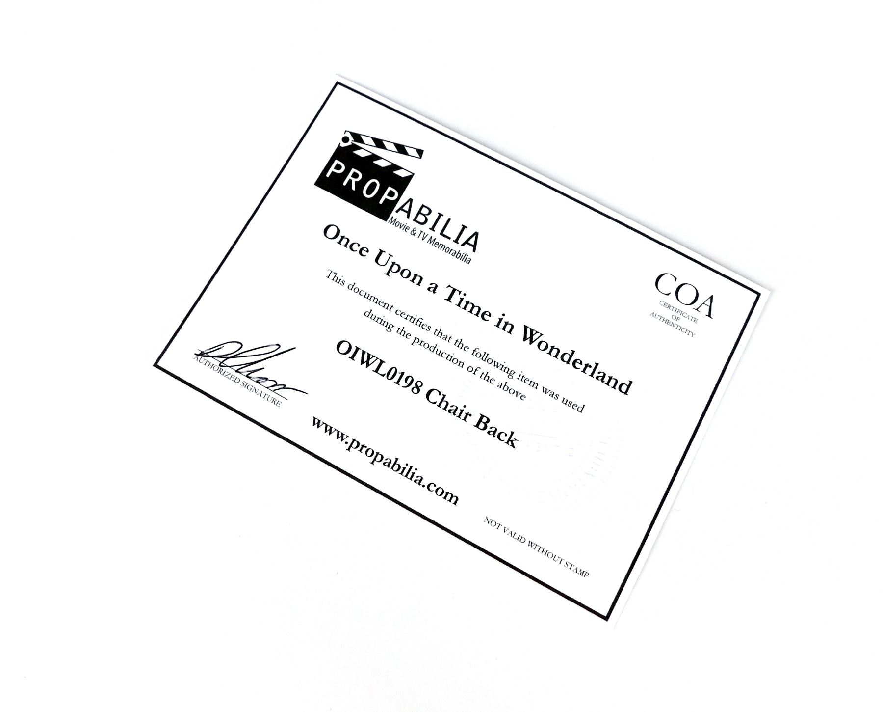 This chair back was acquired by the production for use in 'Once Upon a Time In Wonderland' (ABC, 2013).