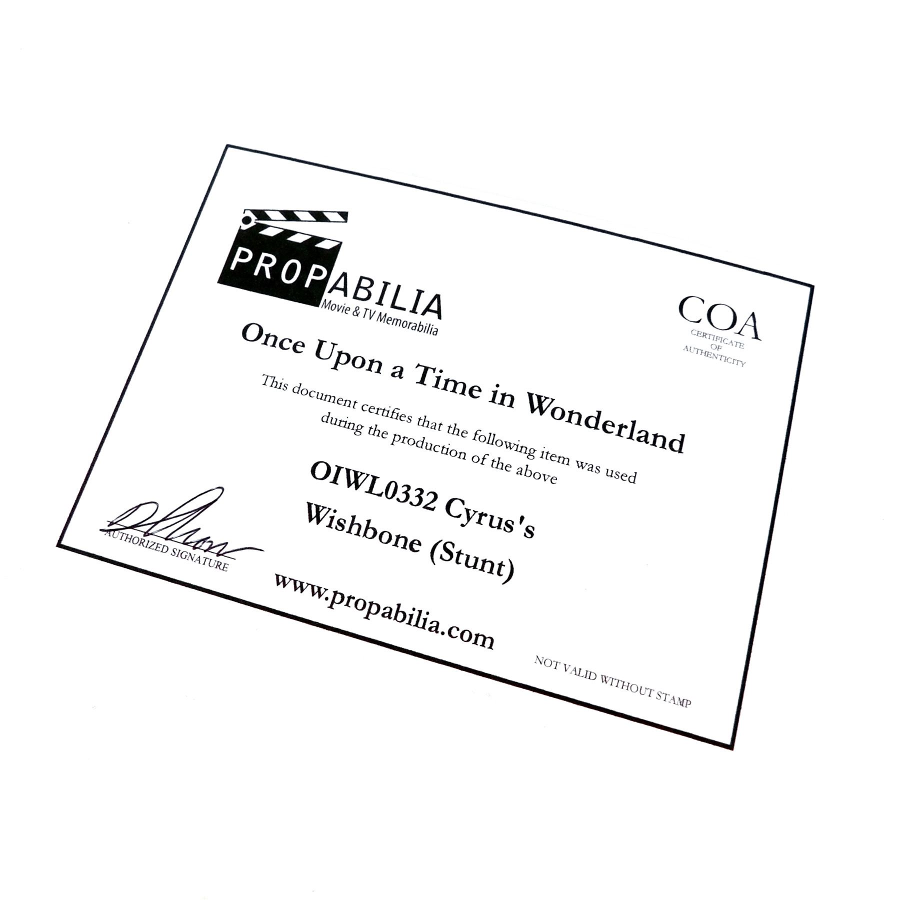 This wishbone was acquired by the production for use in 'Once Upon a Time In Wonderland' (ABC, 2013).