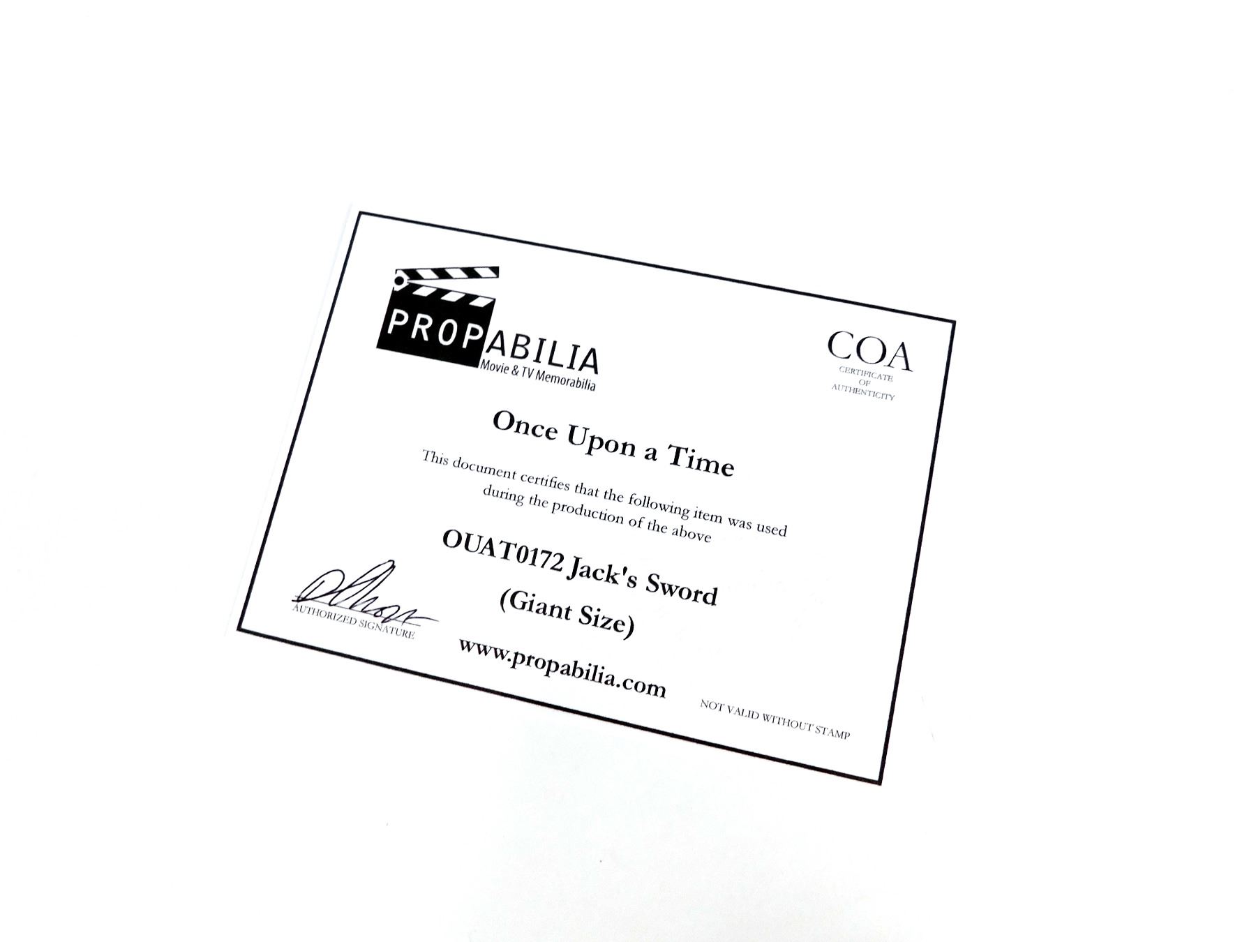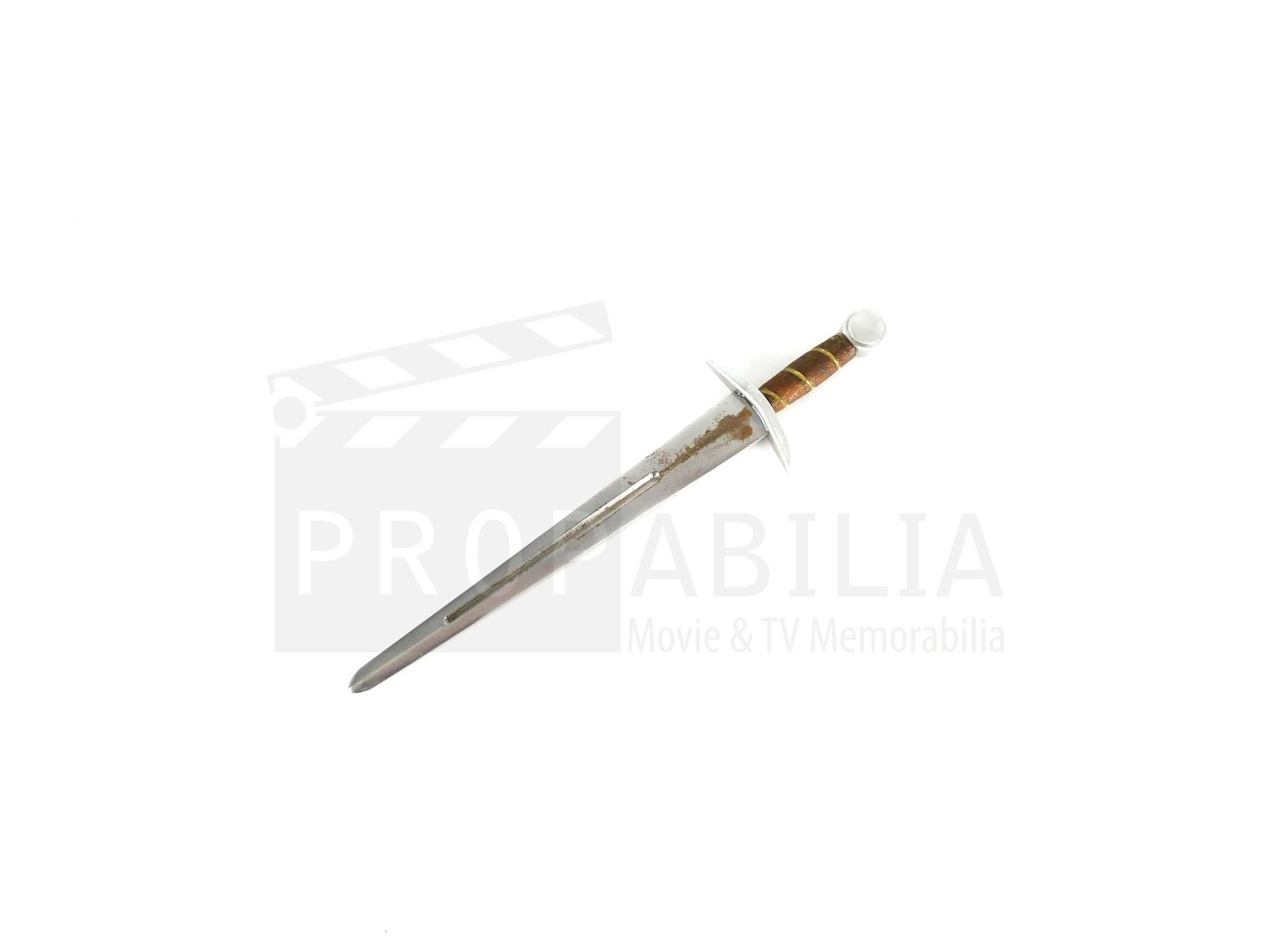 Propabilia guarantees the attribution of each lot of Property as stated in the title block of that lot of Property in the Auction catalogue, each lot of property comes with its own Certificate of Authenticity (COA). Bidders should be aware that multiple examples of props and costumes are frequently used during production (hence the Propmasters saying 'one and done'), usually as few as 3 or as many as 6 or more pieces may be used to represent the item on screen. It is often impossible to determine whether a specific piece has been used on-camera. Any specific details about the property known to Propabilia will be noted within the description, but no warranties are given by Propabilia as to that description.