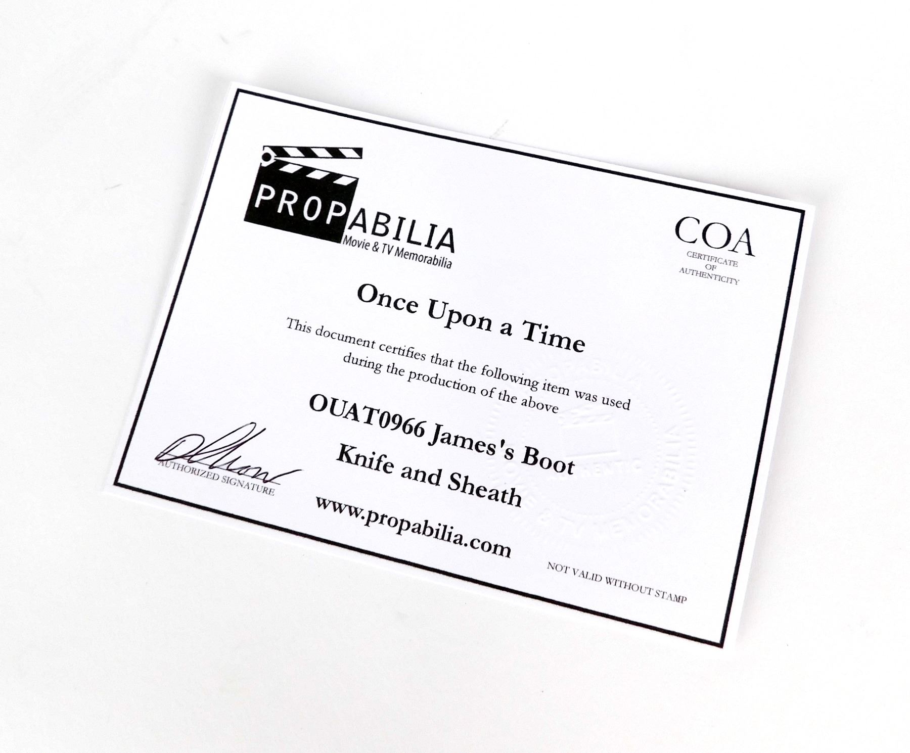 Propabilia guarantees the attribution of each lot of Property as stated in the title block of that lot of Property in the Auction catalogue, each lot of property comes with its own Certificate of Authenticity (COA). Bidders should be aware that multiple examples of props and costumes are frequently used during production (hence the Propmasters saying 'one and done'), usually as few as 3 or as many as 6 or more pieces may be used to represent the item on screen. It is often impossible to determine whether a specific piece has been used on-camera. Any specific details about the property known to Propabilia will be noted within the description, but no warranties are given by Propabilia as to that description.