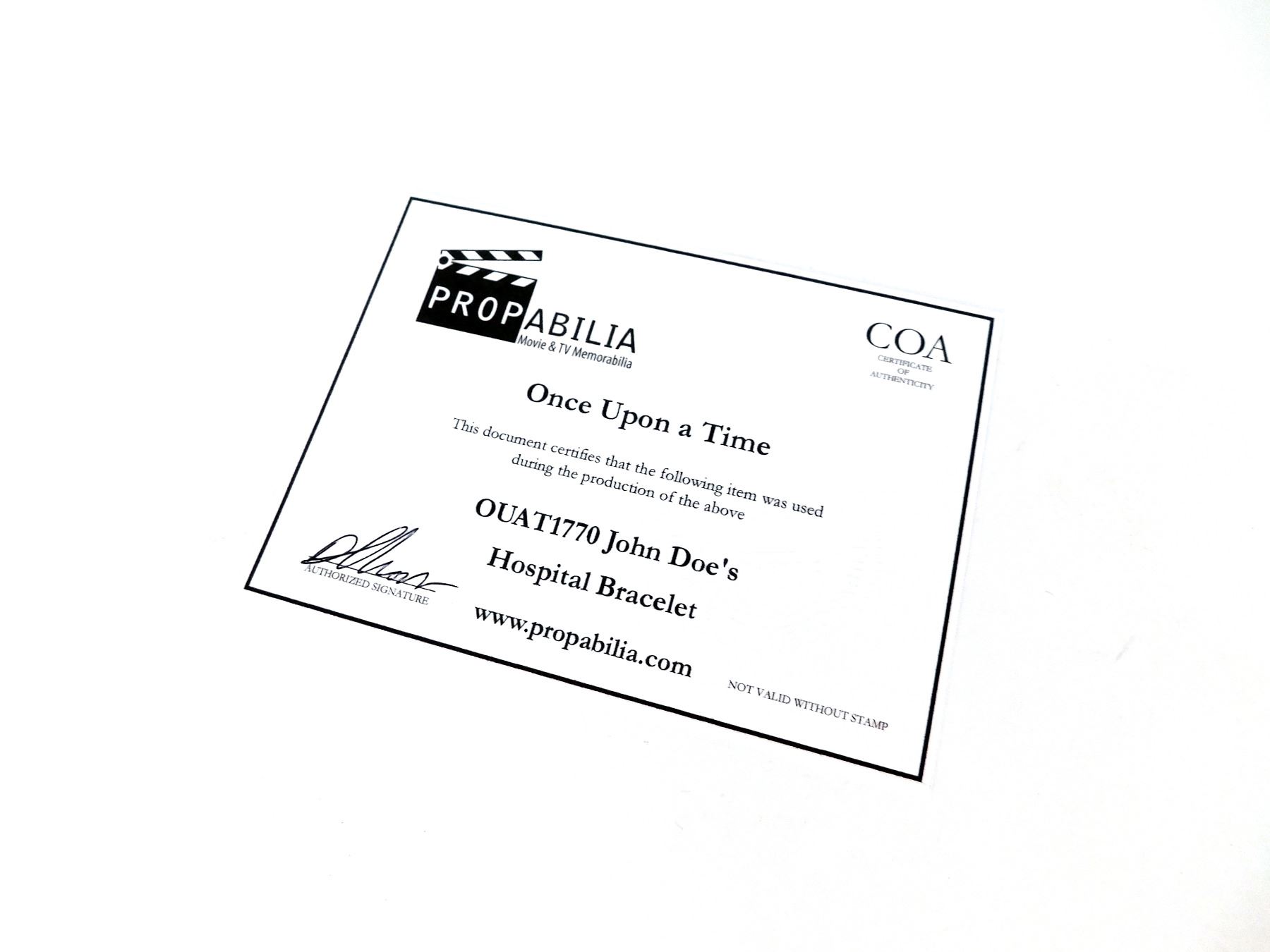 Propabilia guarantees the attribution of each lot of Property as stated in the title block of that lot of Property in the Auction catalogue, each lot of property comes with its own Certificate of Authenticity (COA). Bidders should be aware that multiple examples of props and costumes are frequently used during production (hence the Propmasters saying 'one and done'), usually as few as 3 or as many as 6 or more pieces may be used to represent the item on screen. It is often impossible to determine whether a specific piece has been used on-camera. Any specific details about the property known to Propabilia will be noted within the description, but no warranties are given by Propabilia as to that description.